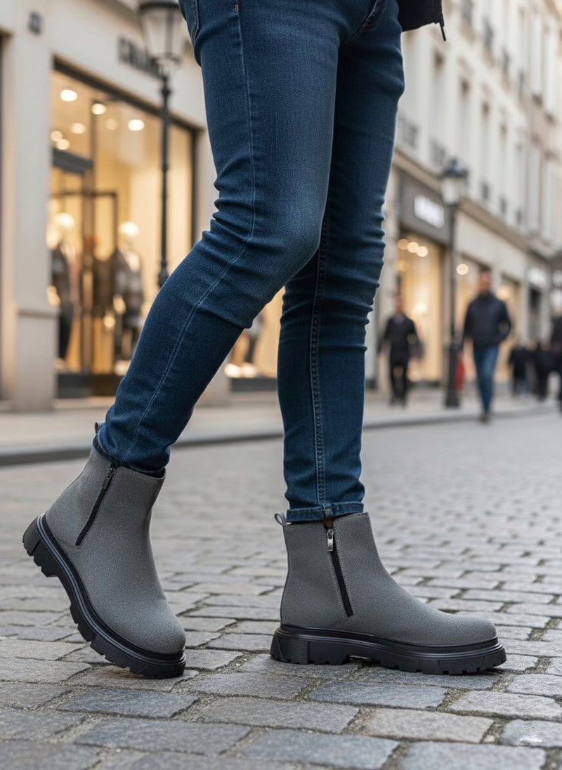 BA0777 Suede Smoked Double Zippered Men's Half Ankle Boots
