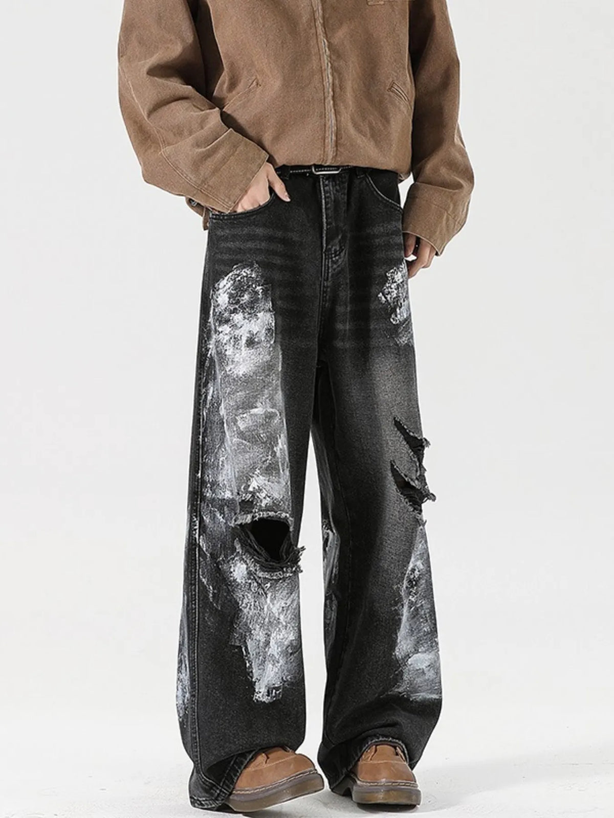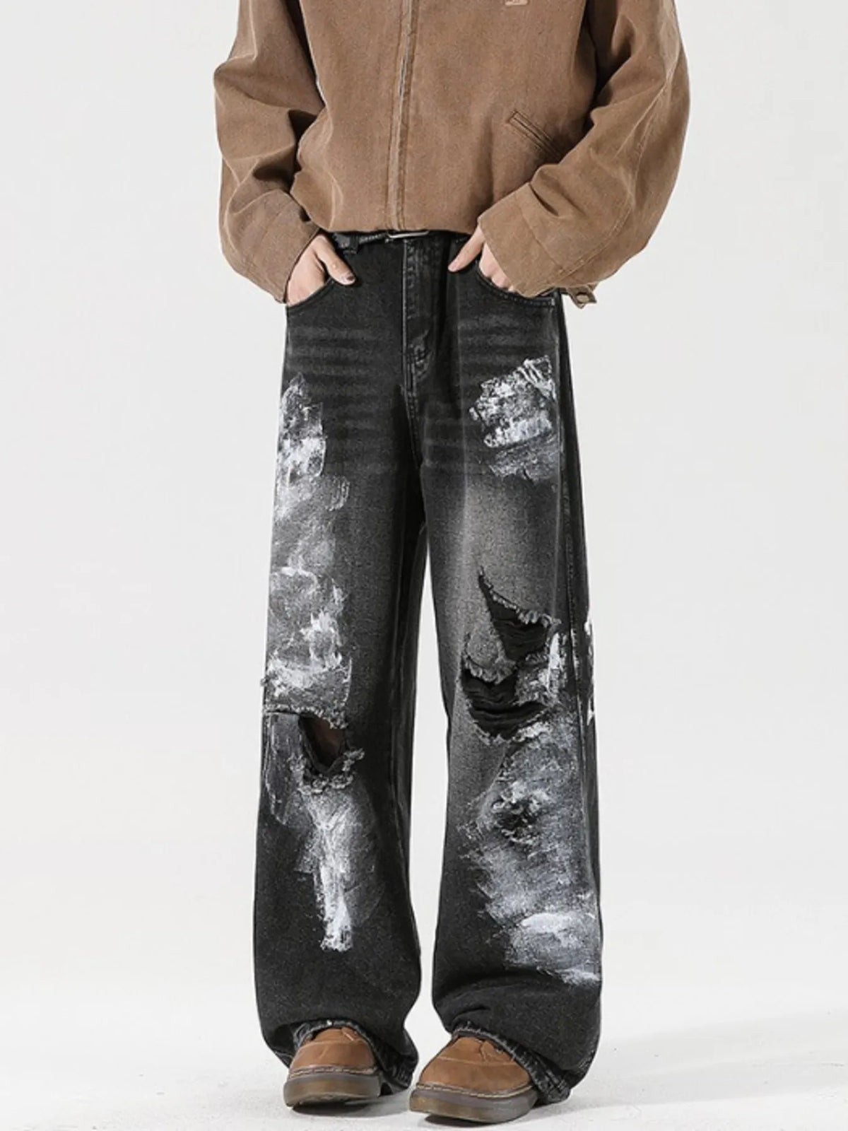 Men's Full Size Distressed Wide Leg Jeans Plus Size