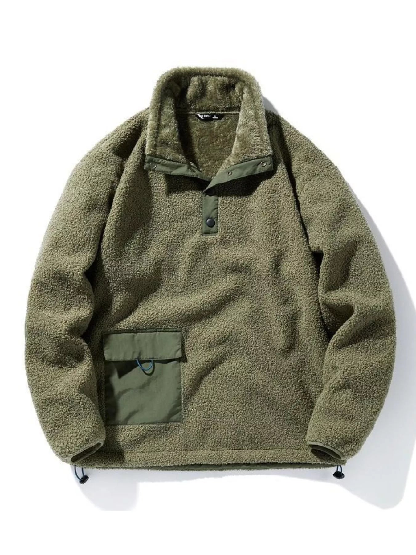Men's Plus Size Drawstring Fleece Long Sleeve Top
