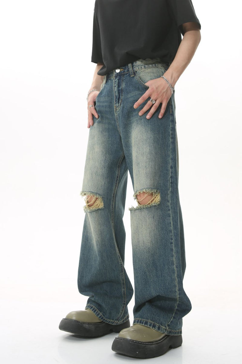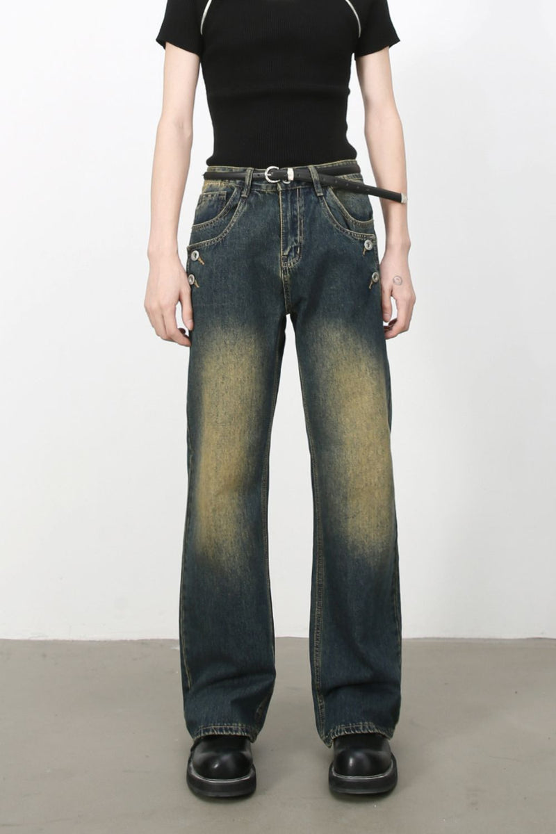 Mid Rise Wide Leg Men's Jeans with Pockets