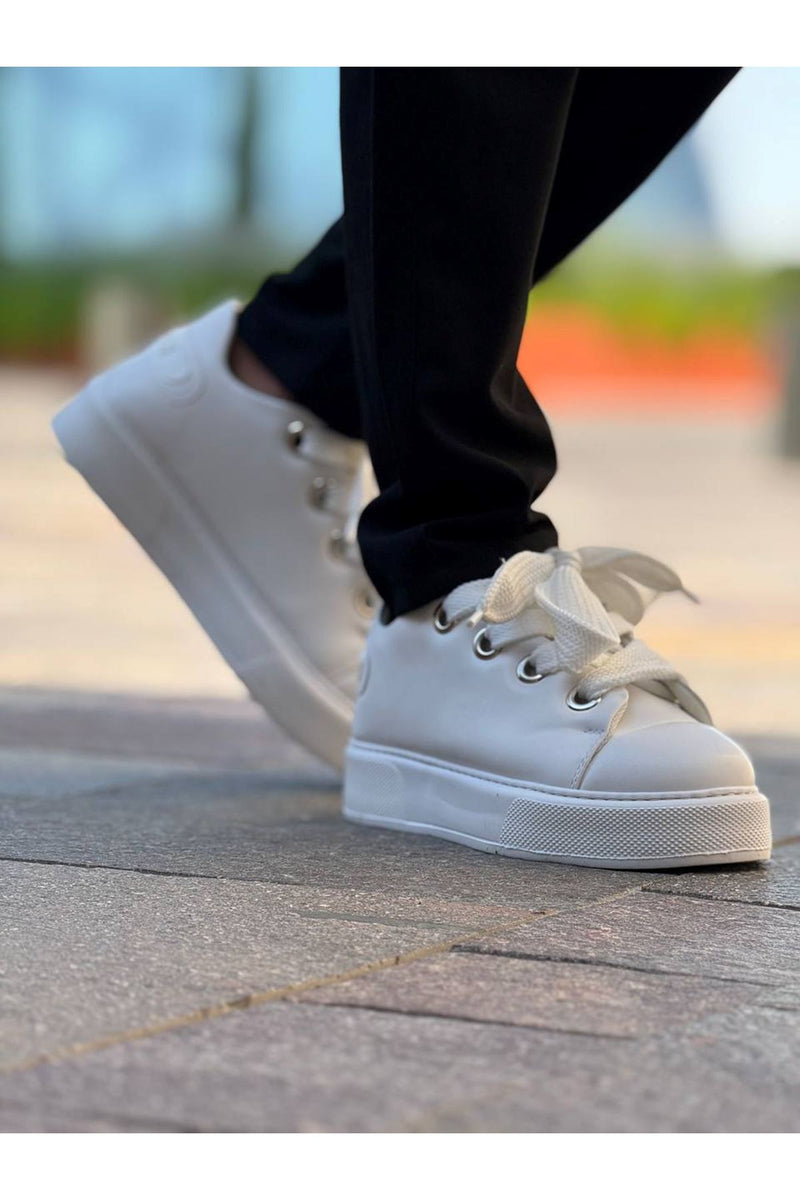 BA0423 Thick High Sole White Cream Laced Sports Men's Shoes