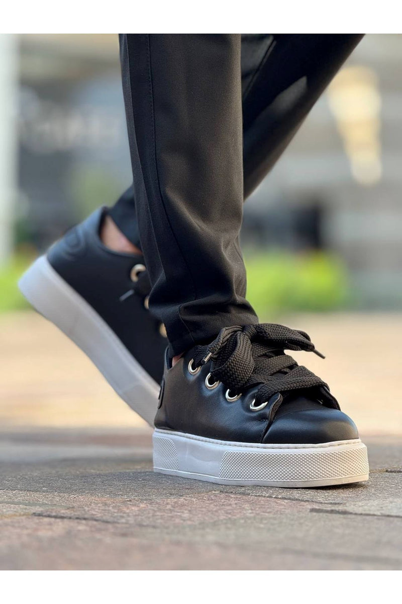BA0423 Thick Black High Sole Black Laced Sports Men's Shoes