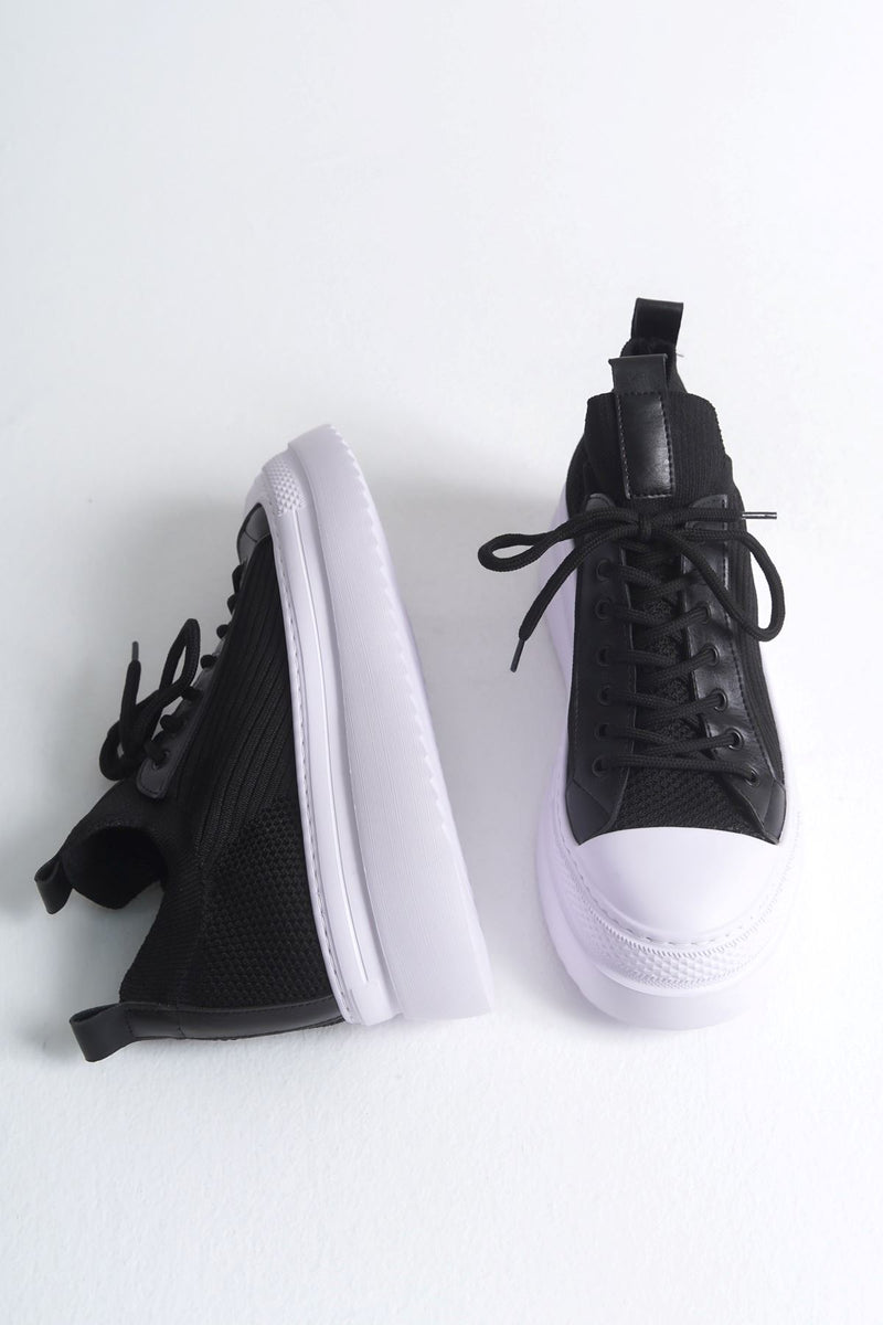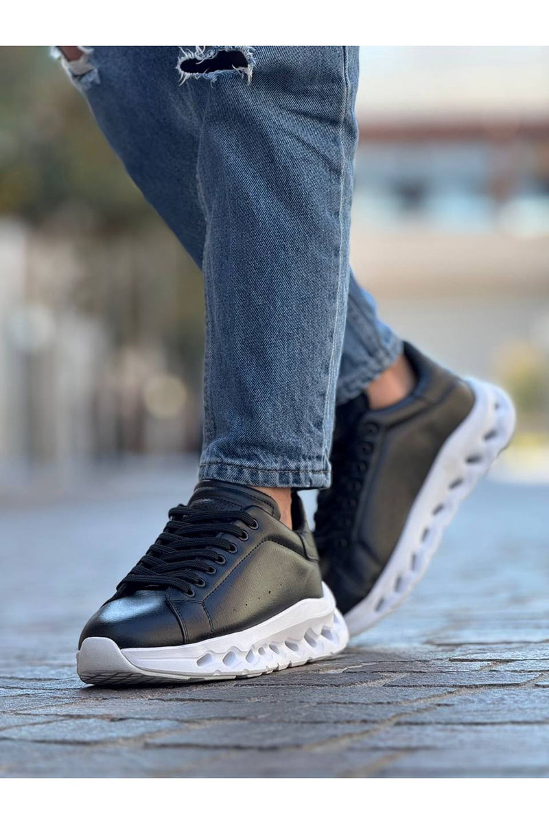 BA0423 Thick High Sole White Black Laced Sports Men's Shoes