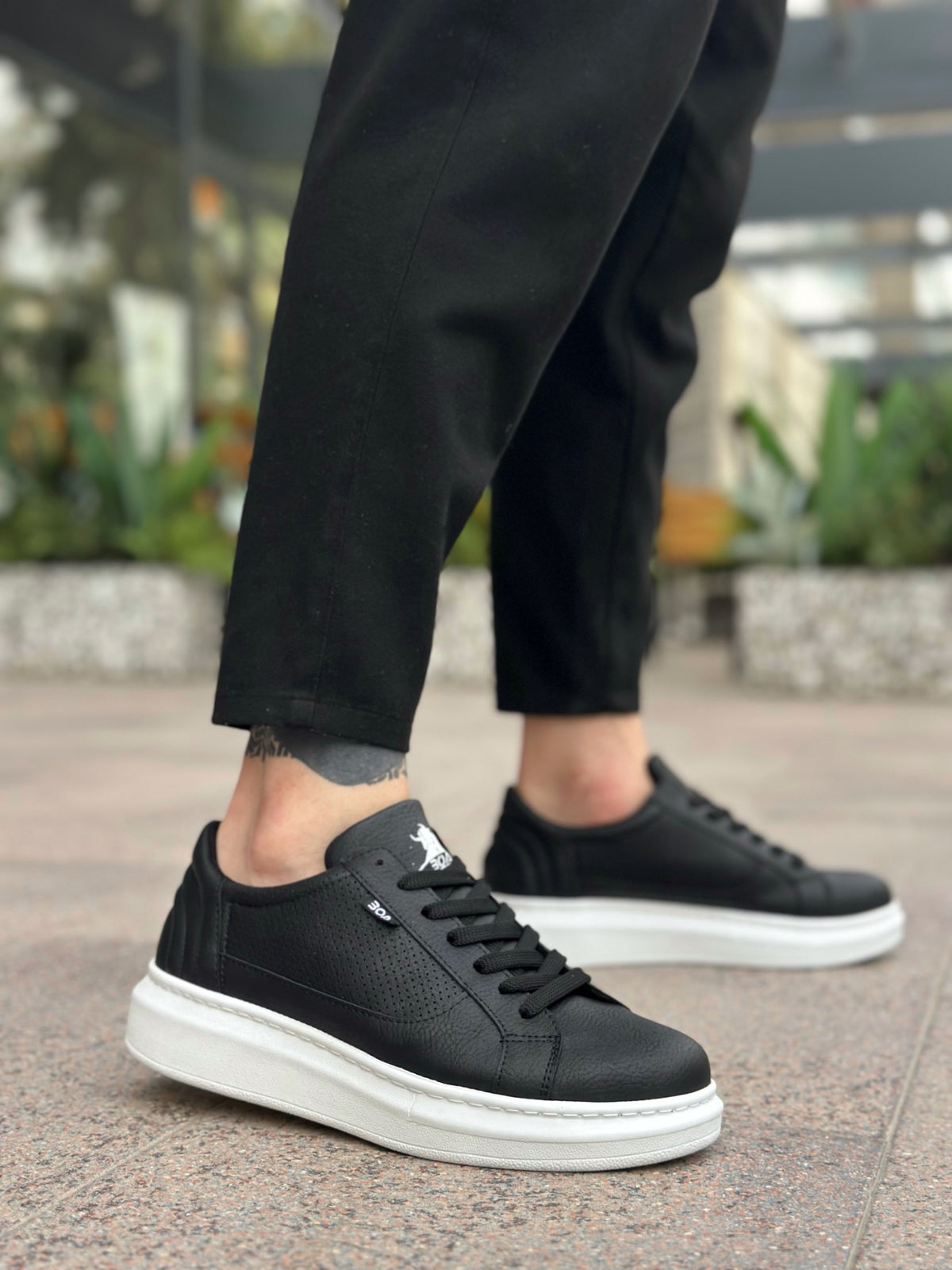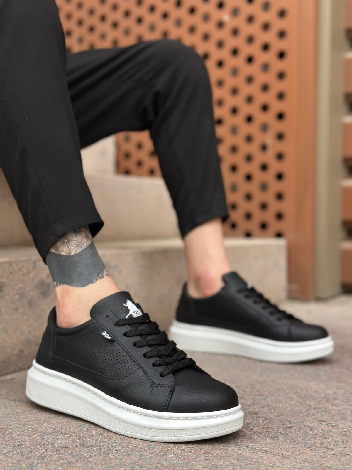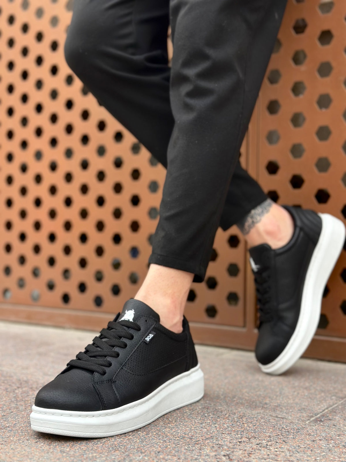 BA0423 Thick High Sole Black Laced Sports Men's Shoes