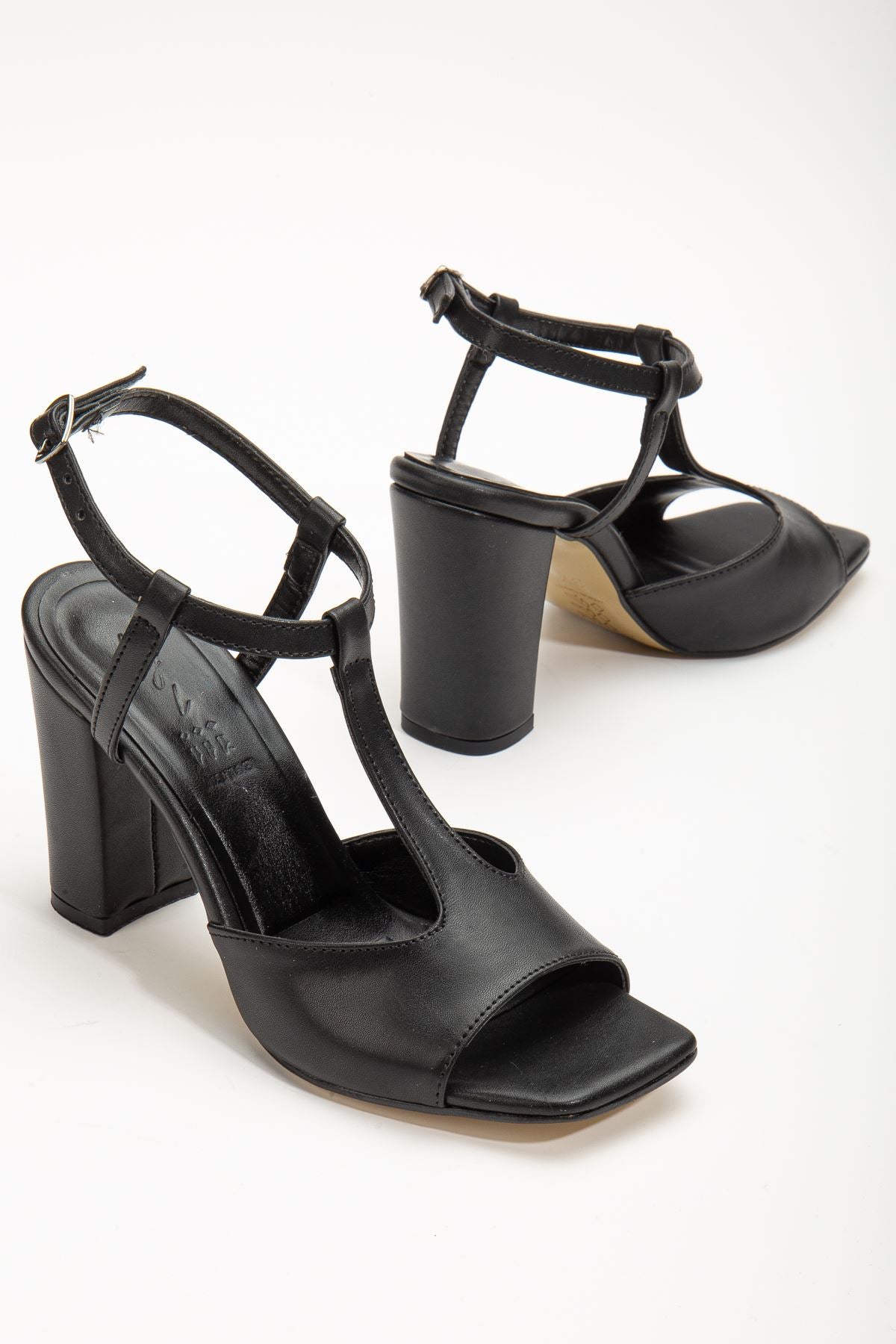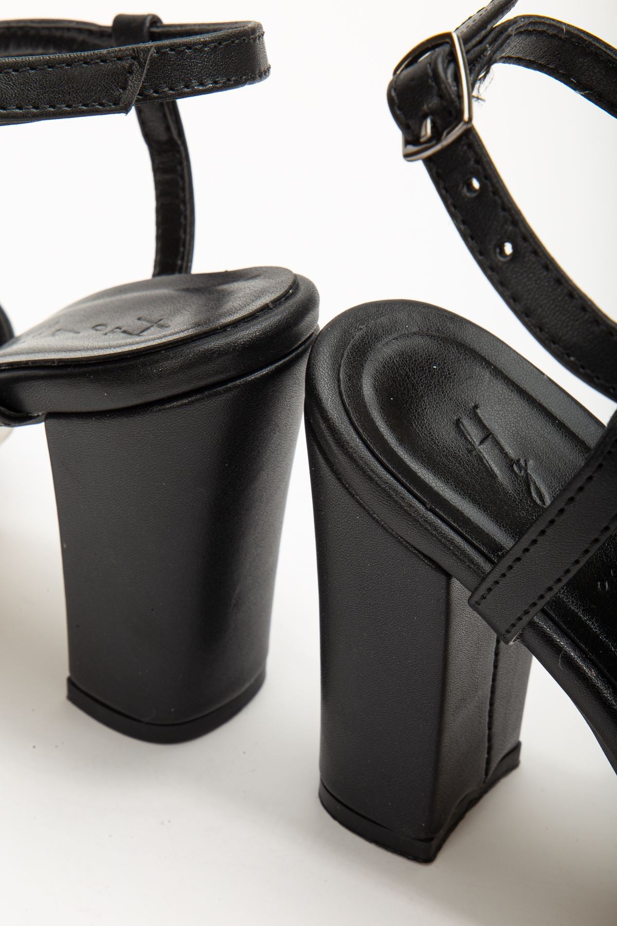 Entela Heeled Black Skin Blunt Toe Women's Shoes