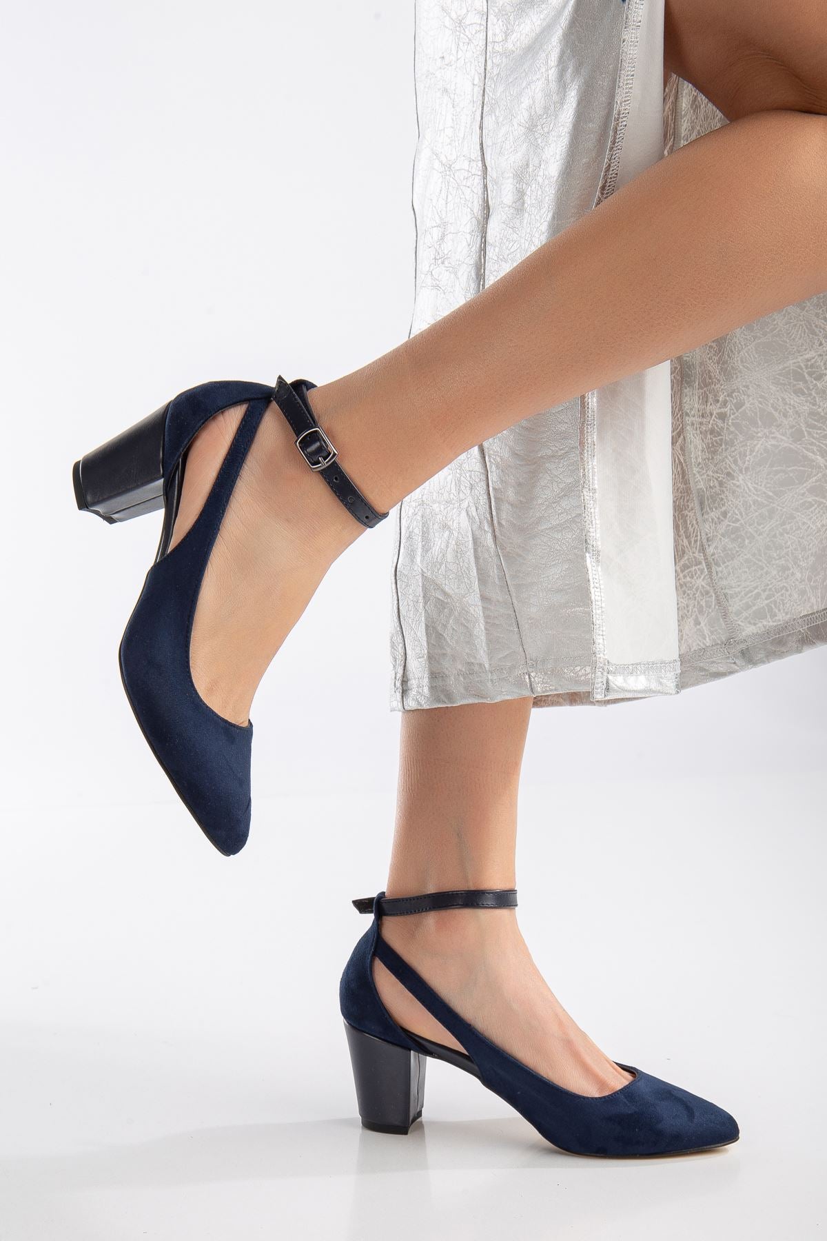 Hero Heeled Navy Blue Suede Women's Shoes