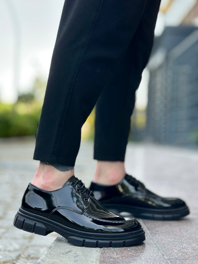 KB-X10 Black Patent Leather Black High Sole Casual Sneakers