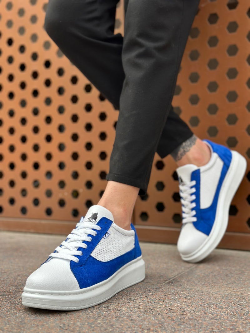 BA0423 Thick High Sole White Blue Laced Sports Men's Shoes