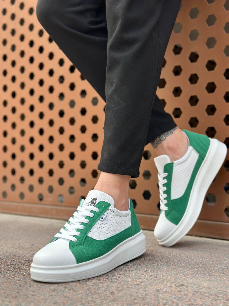 BA0423 Thick High Sole White Green Laced Sports Men's Shoes