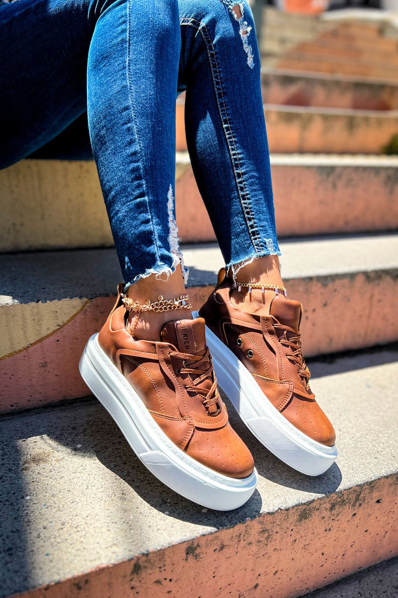 KB-X10 Brown Suede White High Sole Casual Sneakers