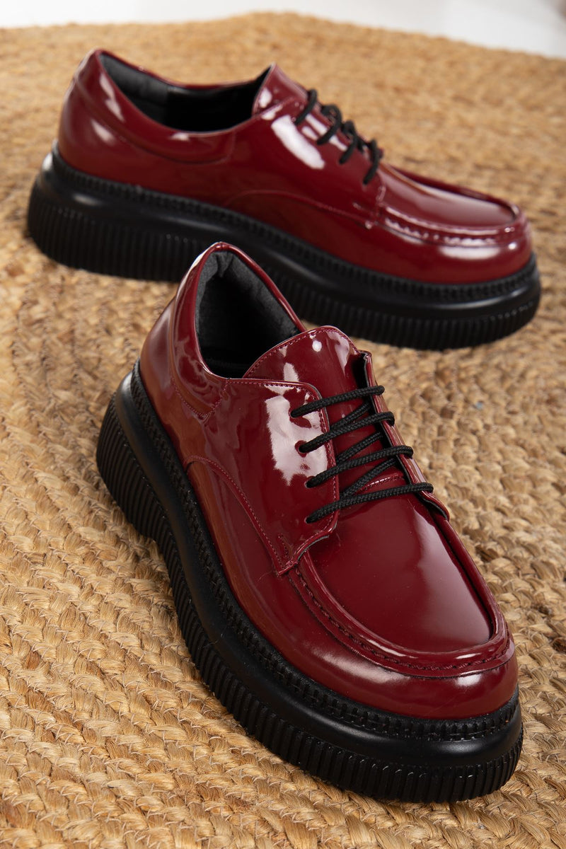 Women's Claret Red Patent Leather Casual Orthopedic Sole Oxford Shoes