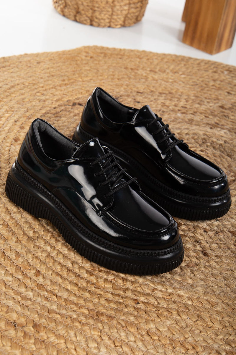 Women's Black Patent Leather Casual Orthopedic Sole Oxford Shoes