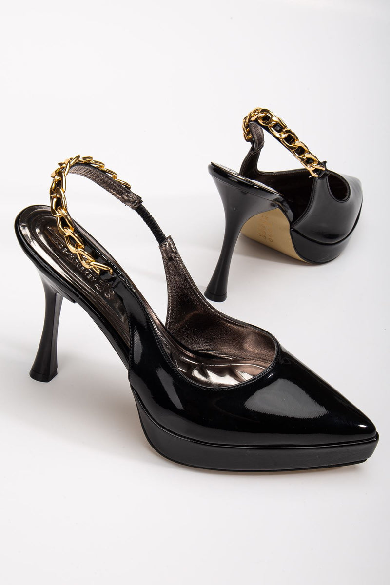 Women's Black Patent Leather Platform Pointed Toe Thick Heel Shoes