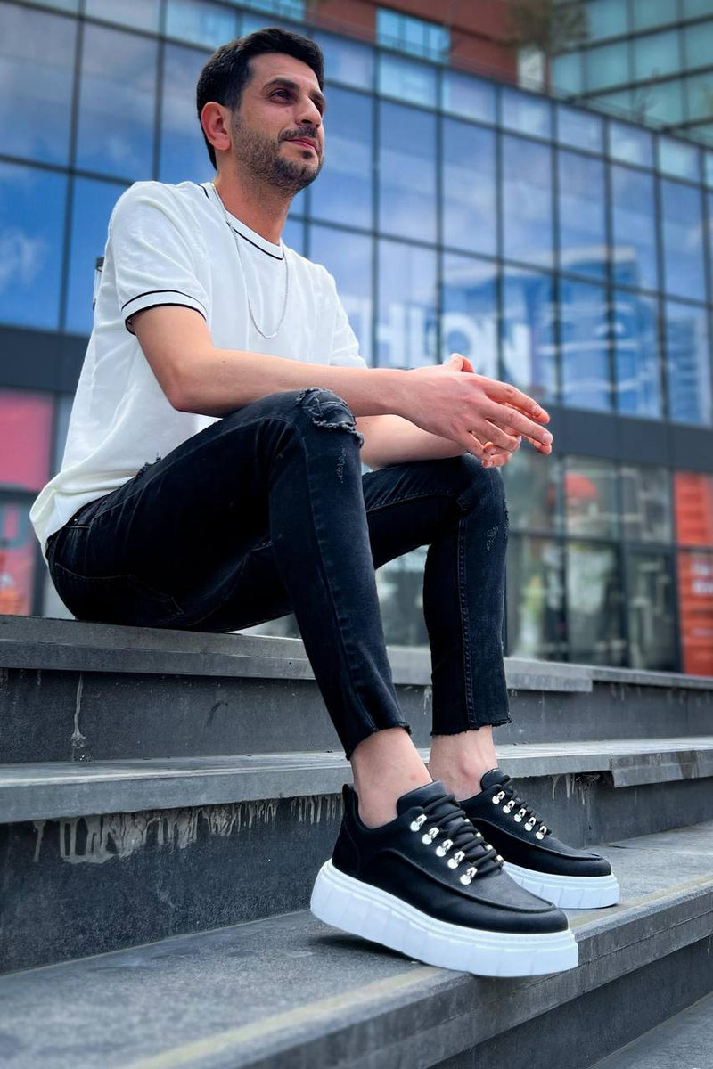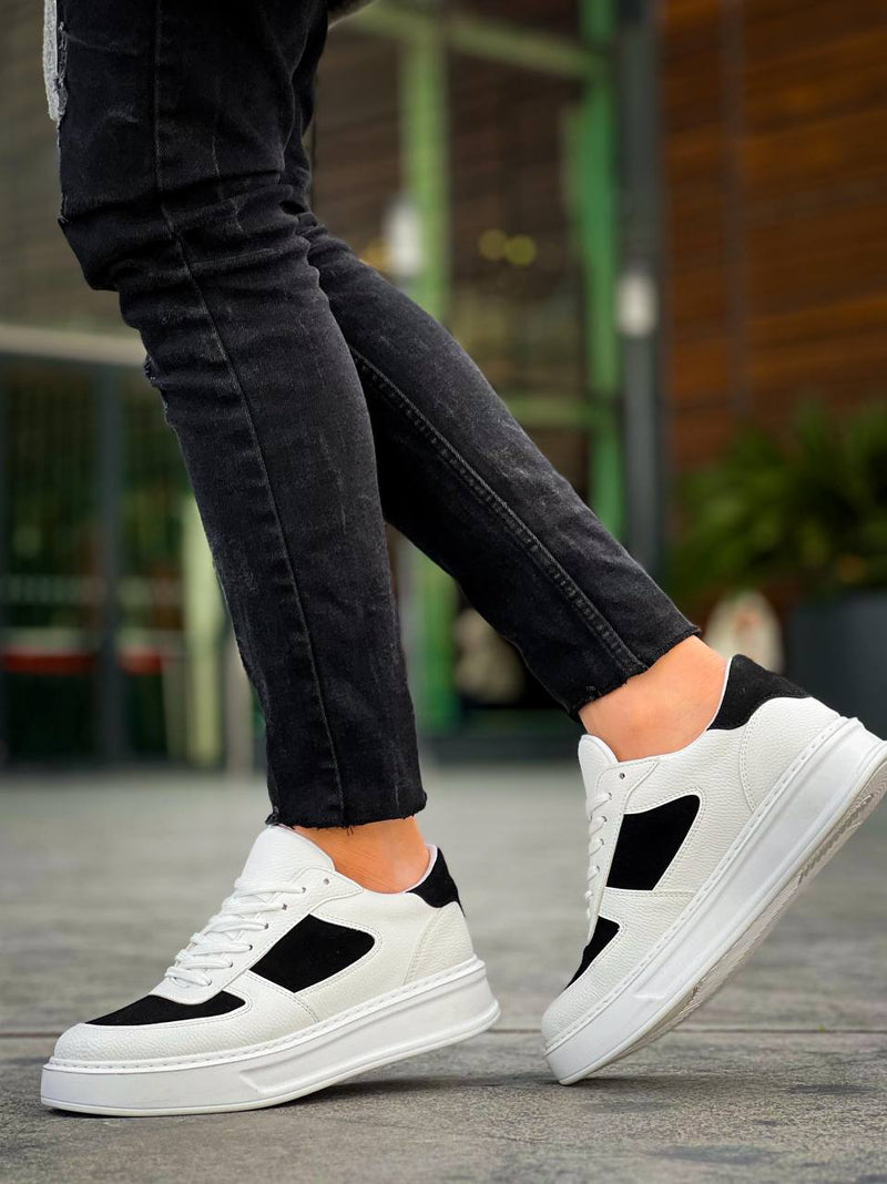 BA0423 Thick High Sole White Black Laced Sports Men's Shoes