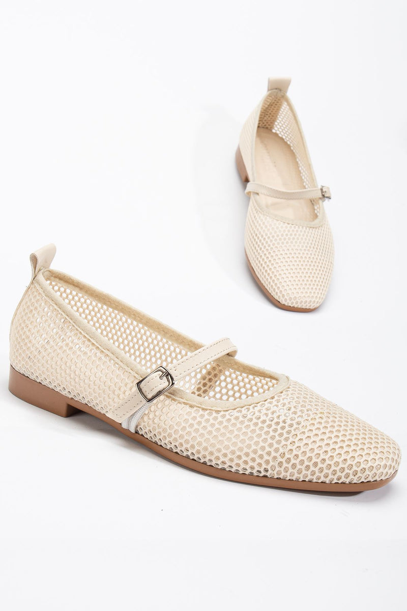 Beige Women's Mesh Single Band Comfortable Ergonomic Ballerinas Soft Sole