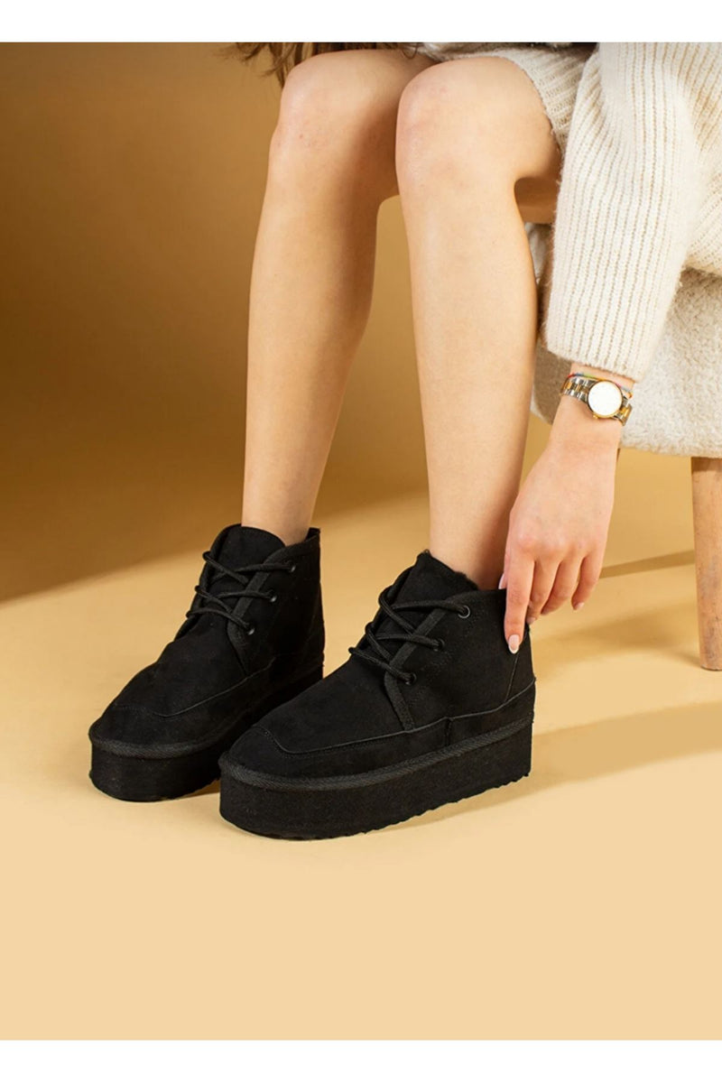 Selsil black suede lace-up women's boots