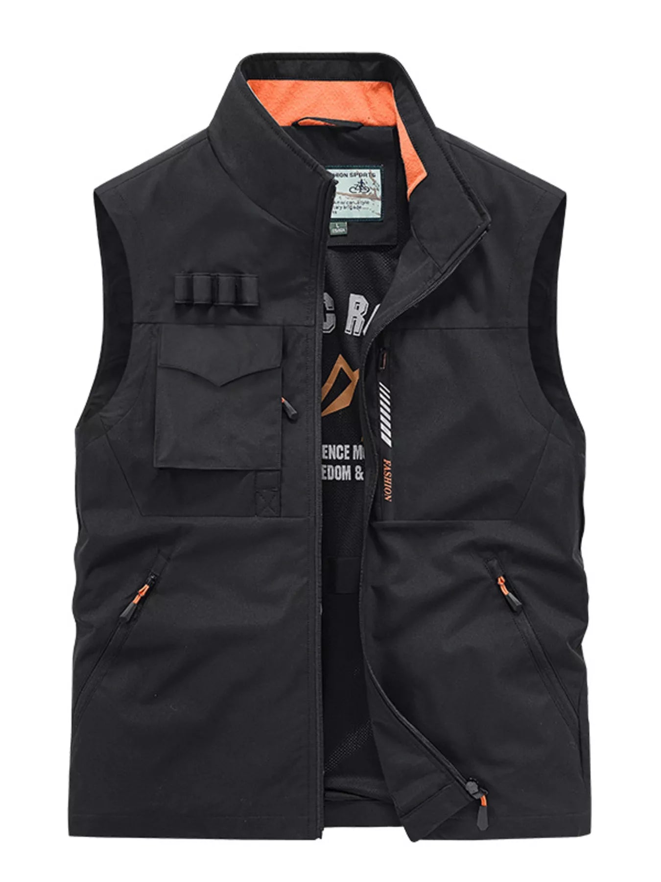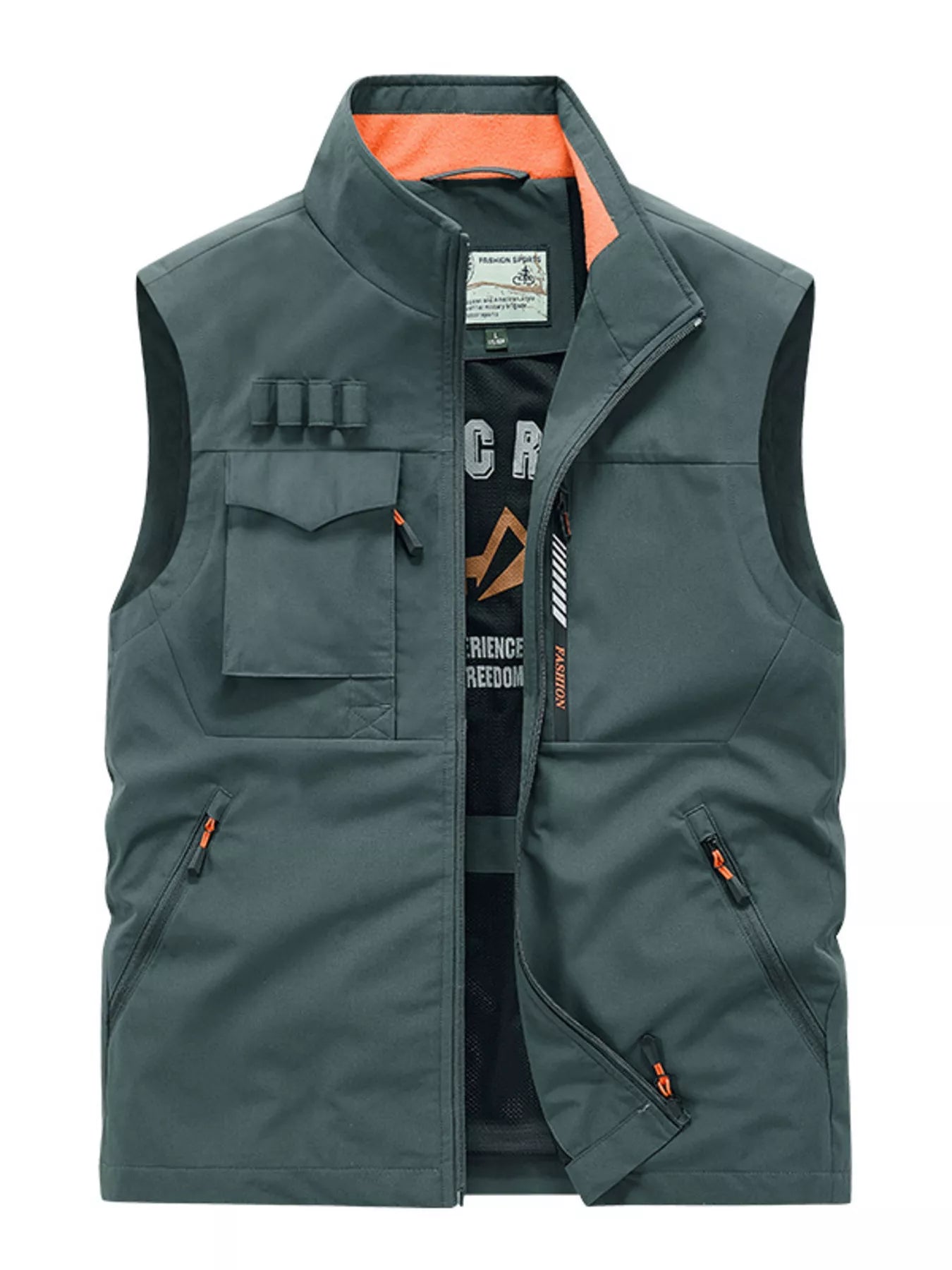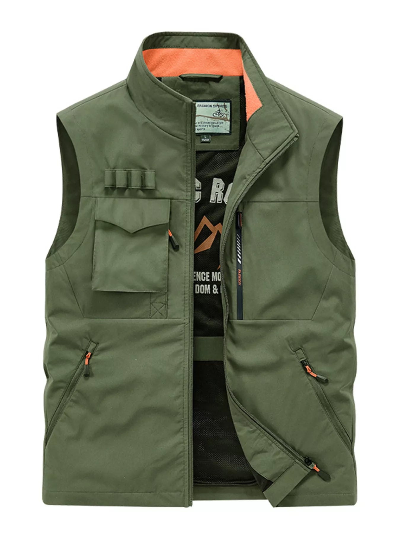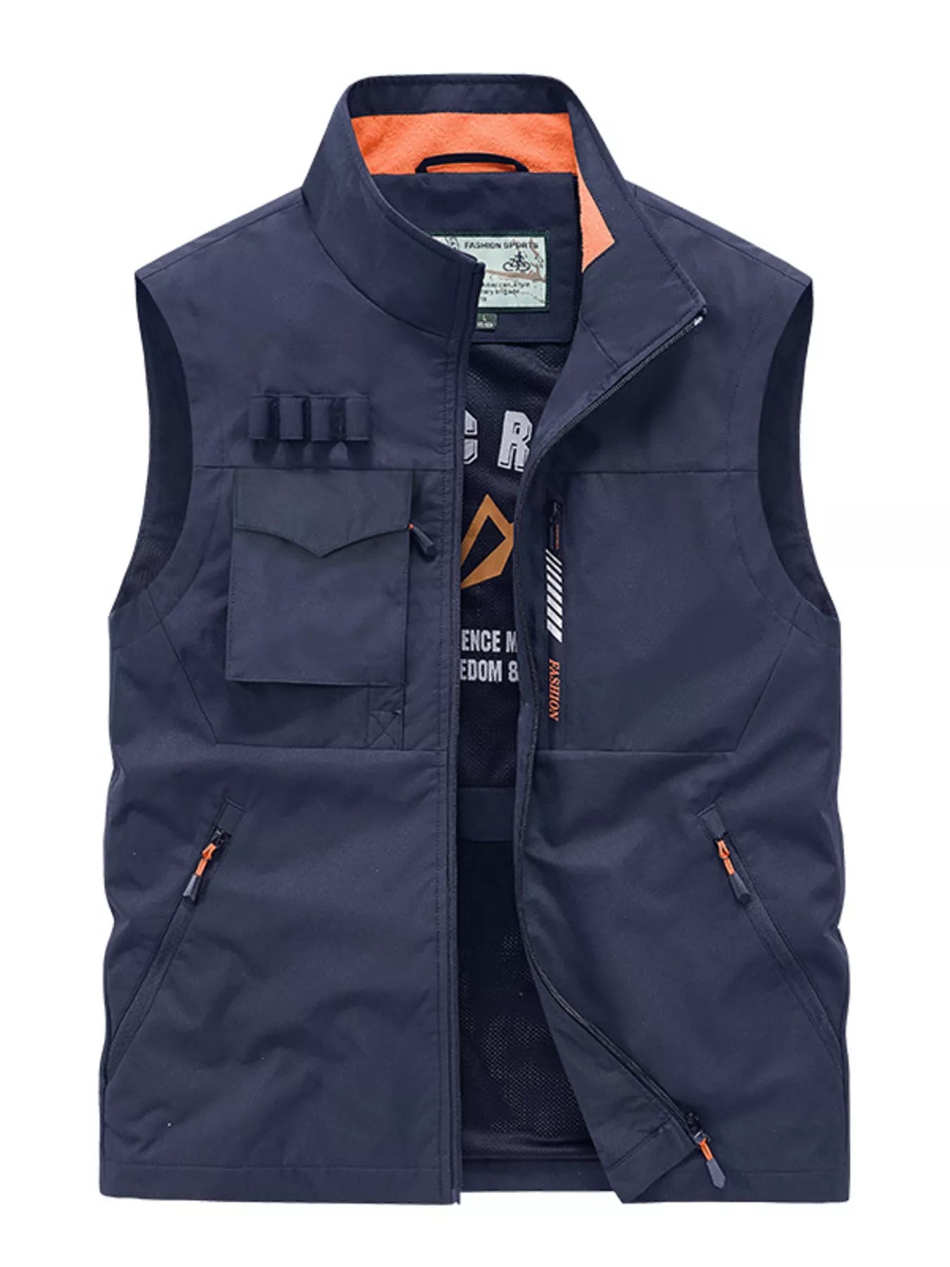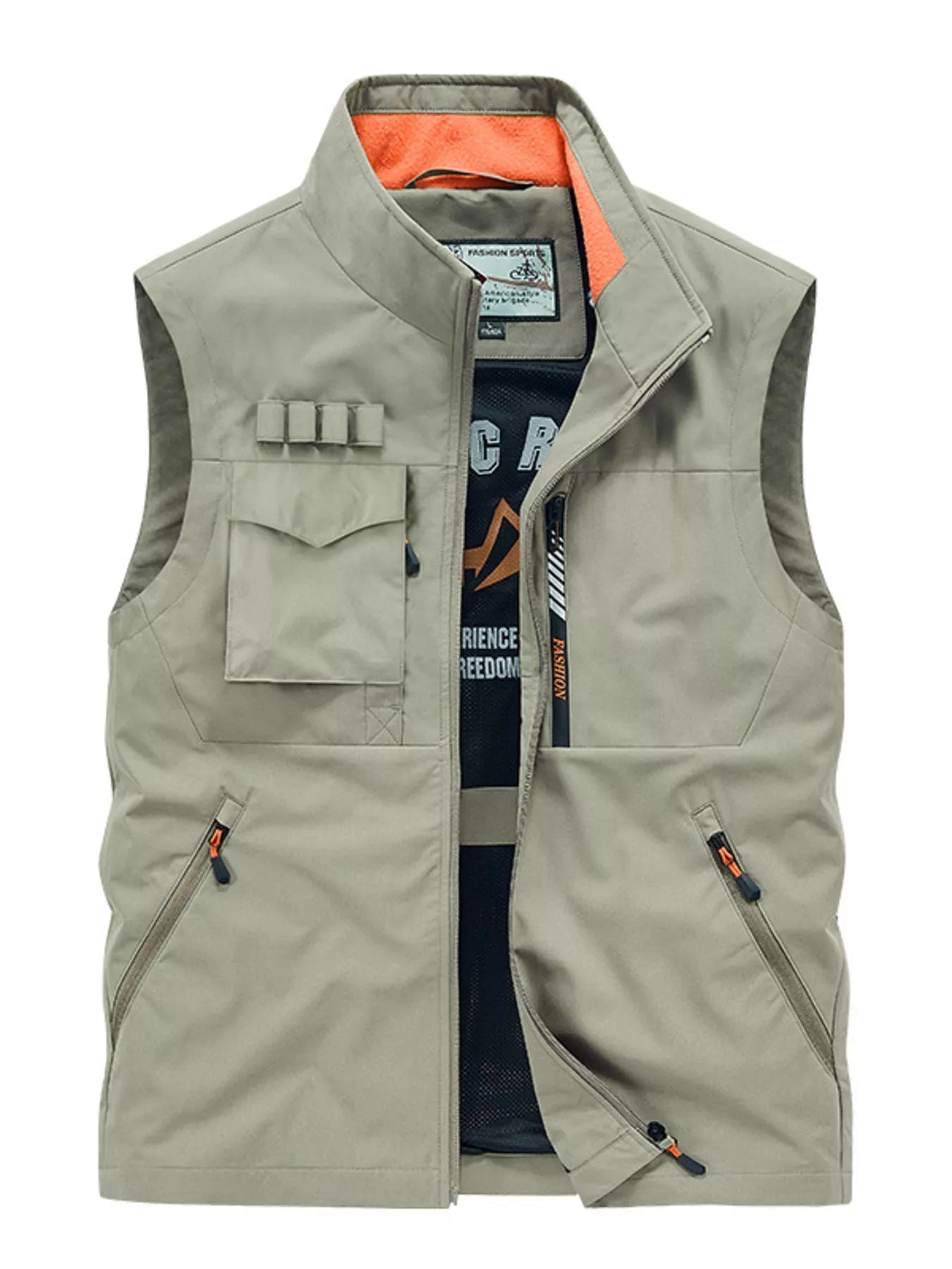 Men's Plus Size Multi-Pocket Zip Up Vest
