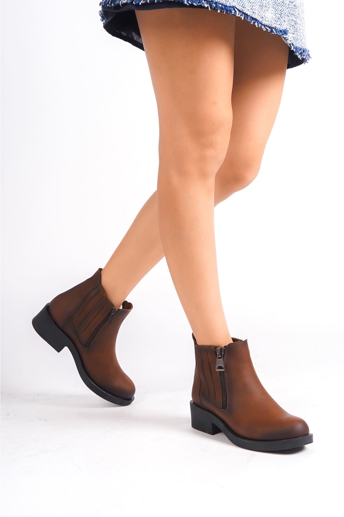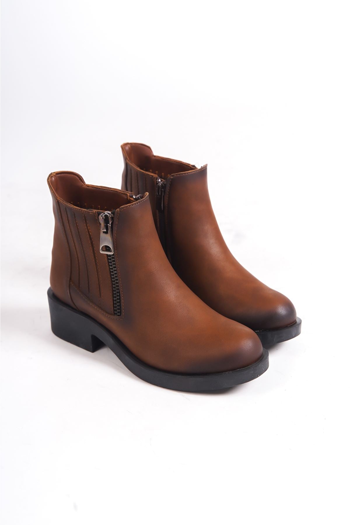 Ayam Women's Tan Zipper Detailed Ankle Boots