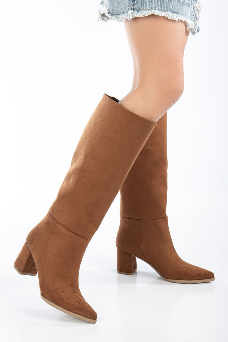 Women's Brown Suede Pointed Toe Pull-On Boots