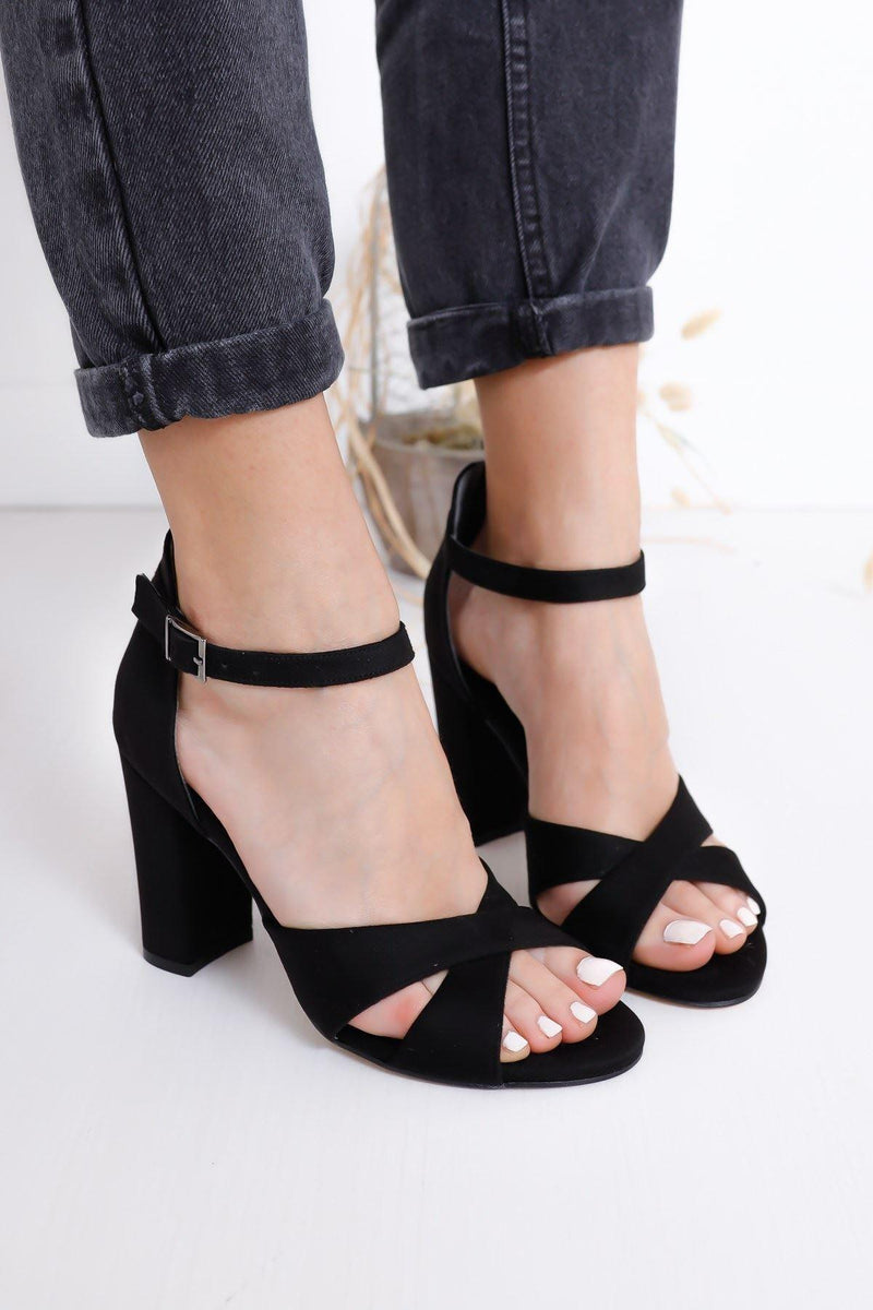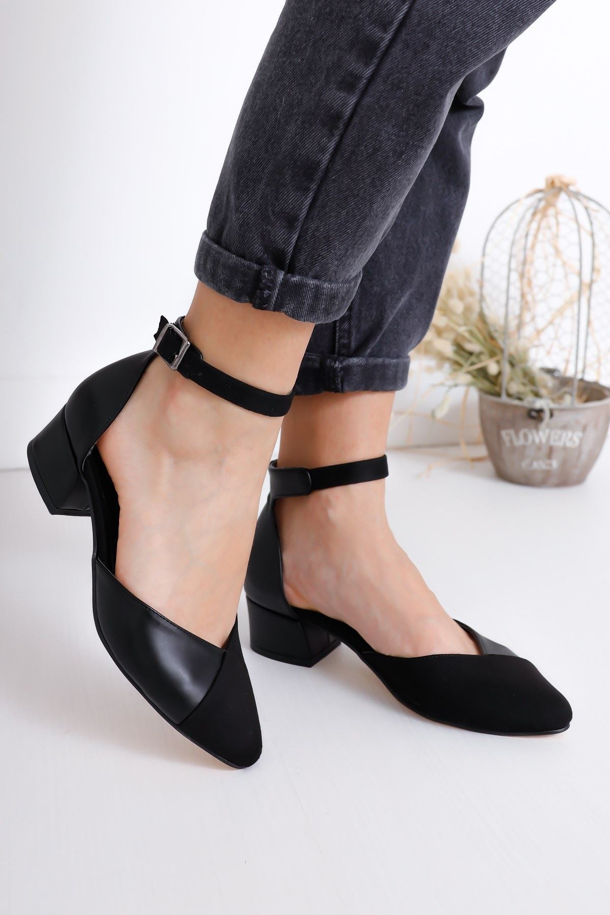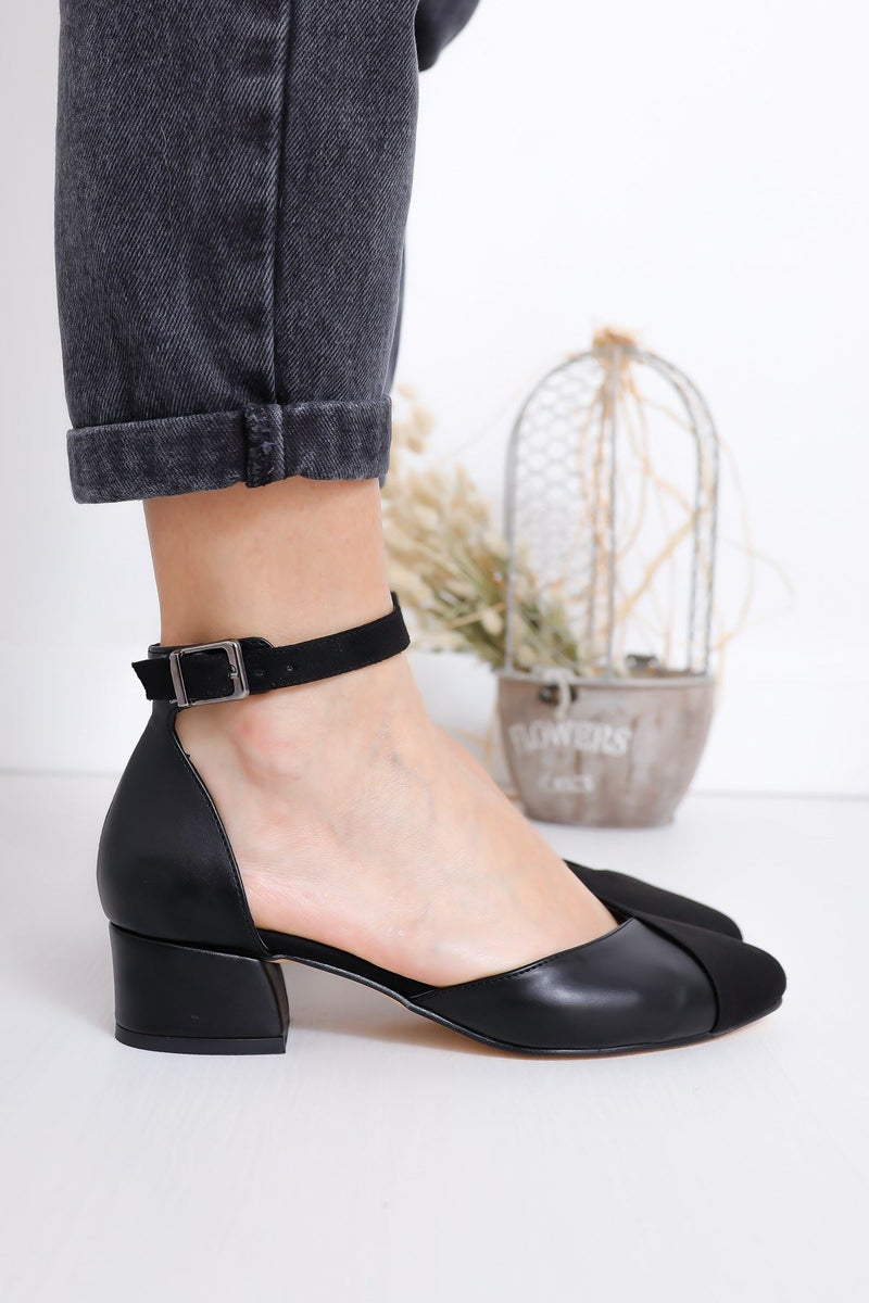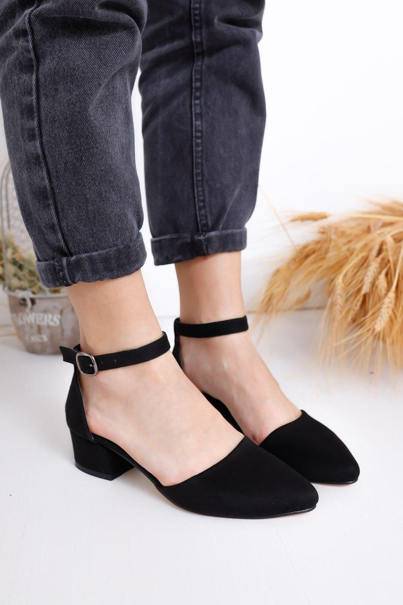 Lydia Black Skin Stone Detailed Heeled Women's Shoes