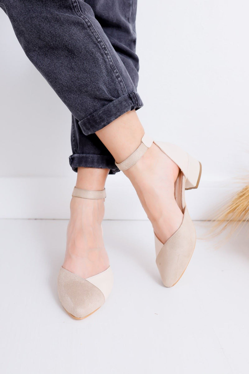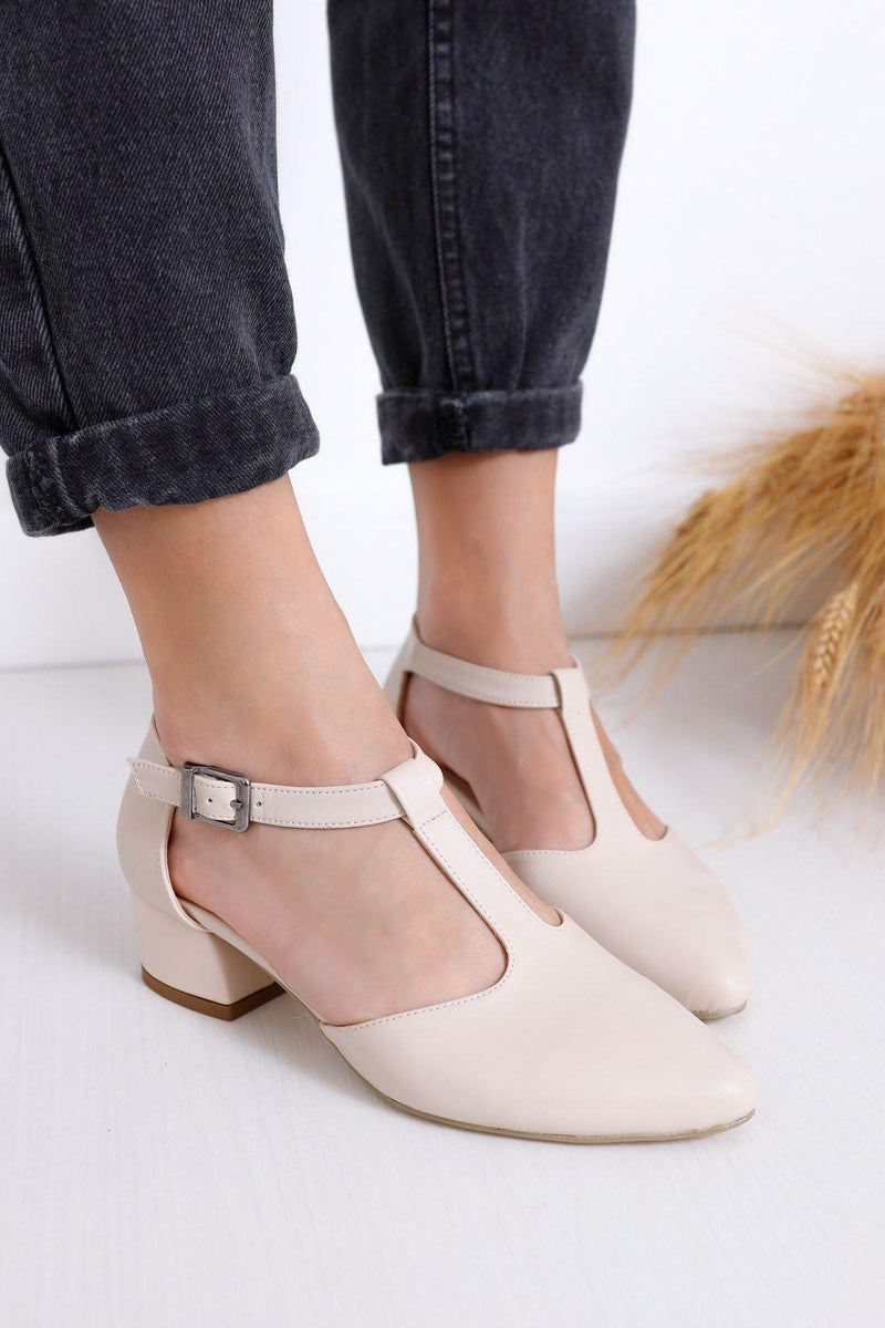 Lydia Nude Skin Stone Detailed Heeled Women's Shoes