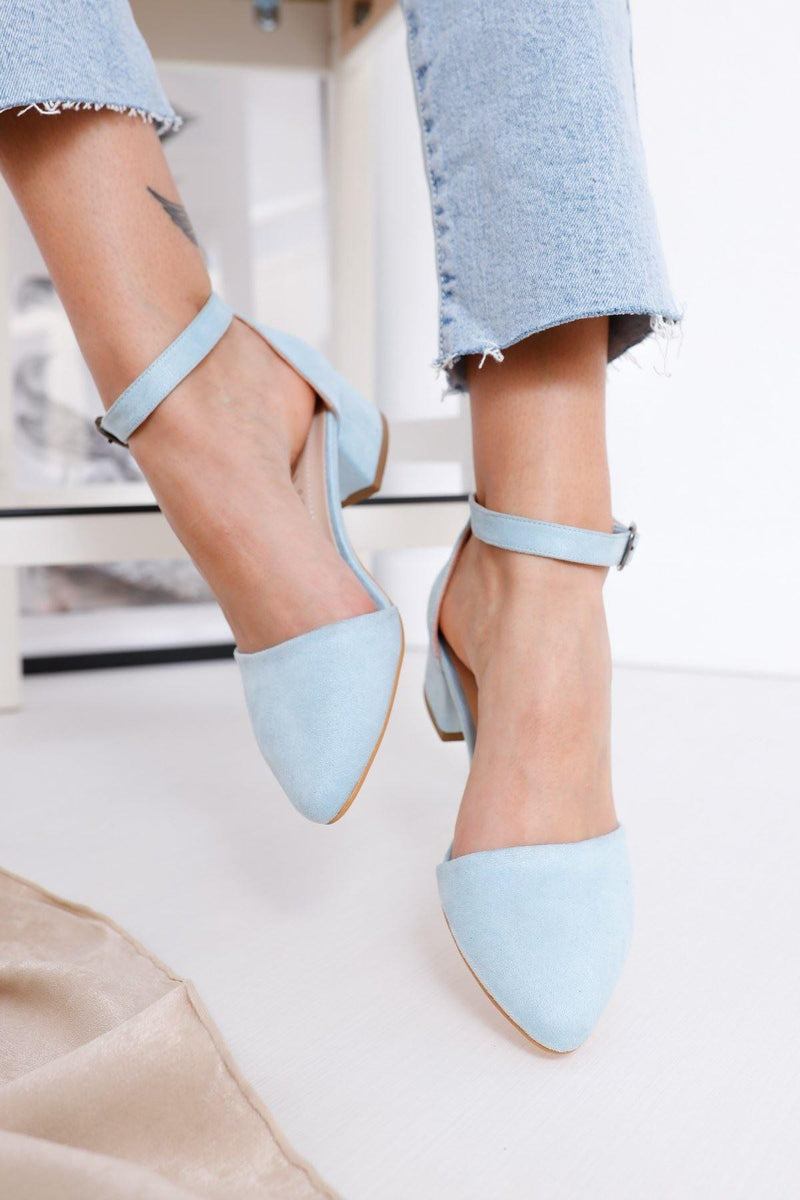 Women's Valentina Heeled Baby Blue Suede Shoes