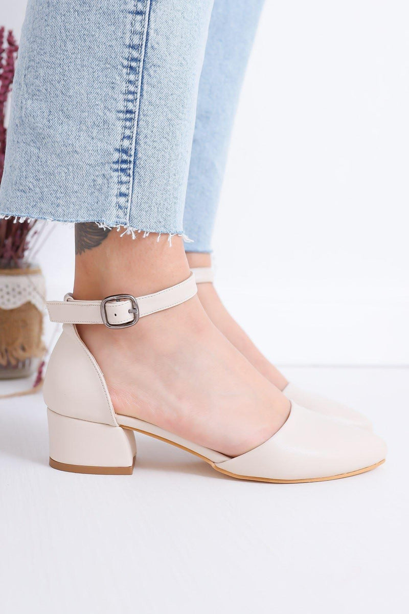 Lydia White Skin Stone Detailed Heeled Women's Shoes
