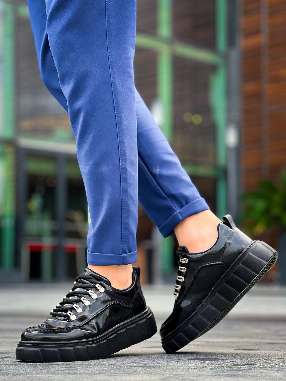 KB-X10 Black Patent Leather Black High Sole Casual Sneakers