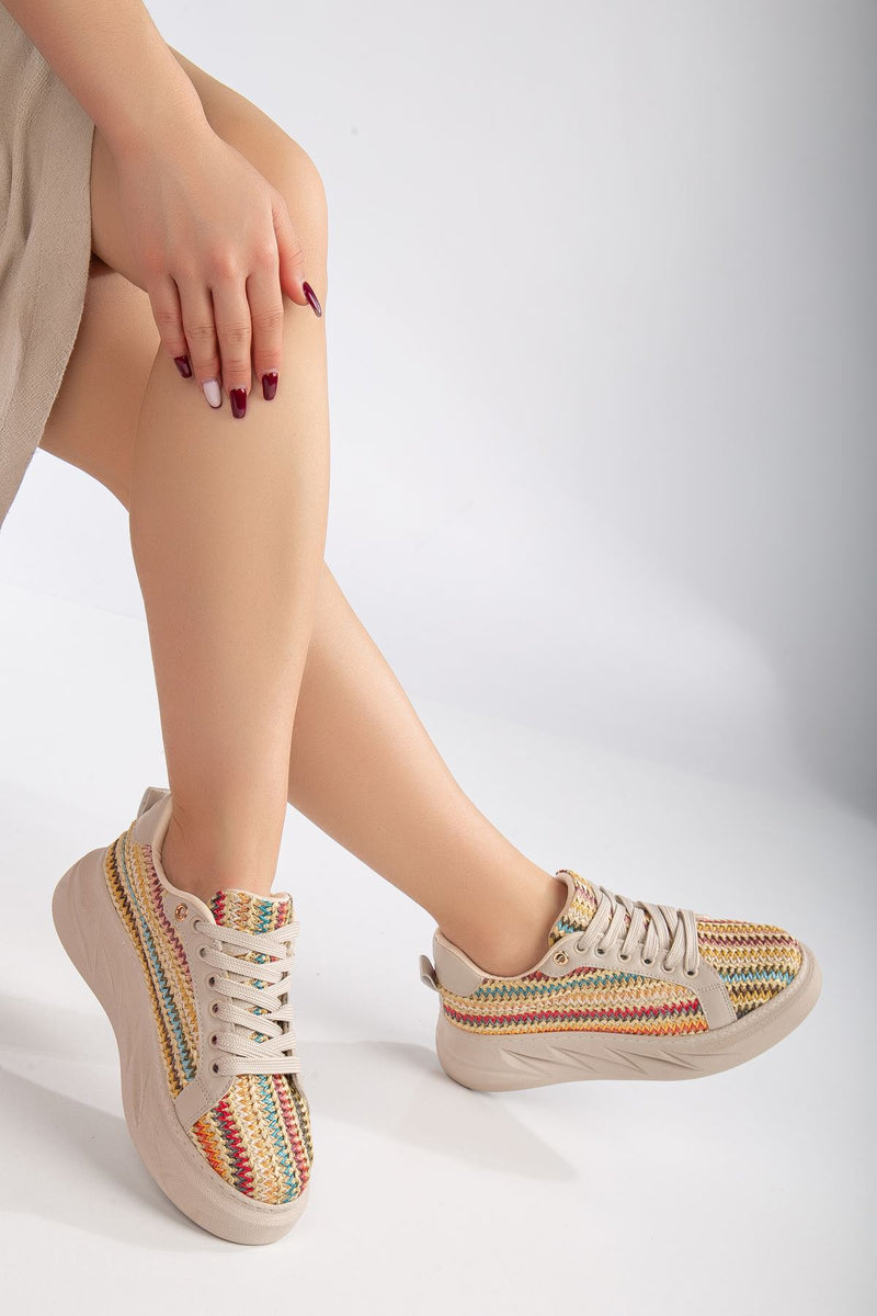 Women's Mavis Cream - Colored Thick Sole Straw Detailed Sneakers