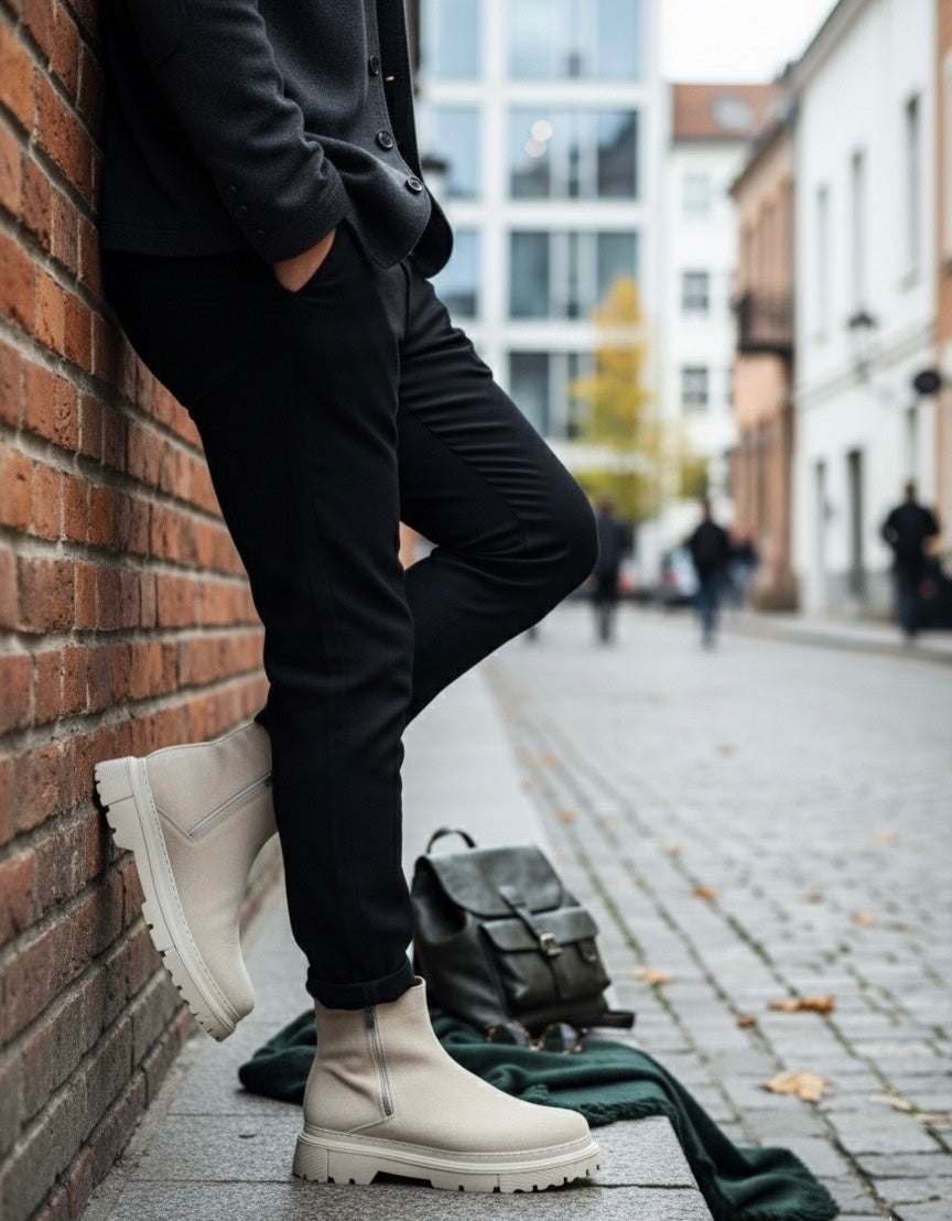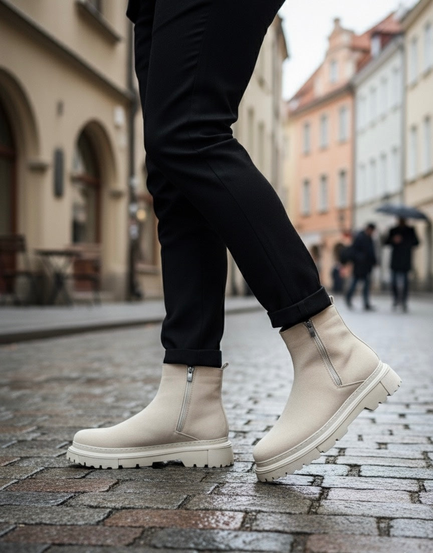 BA0777 Suede Beige Double Zippered Men's Half Ankle Boots