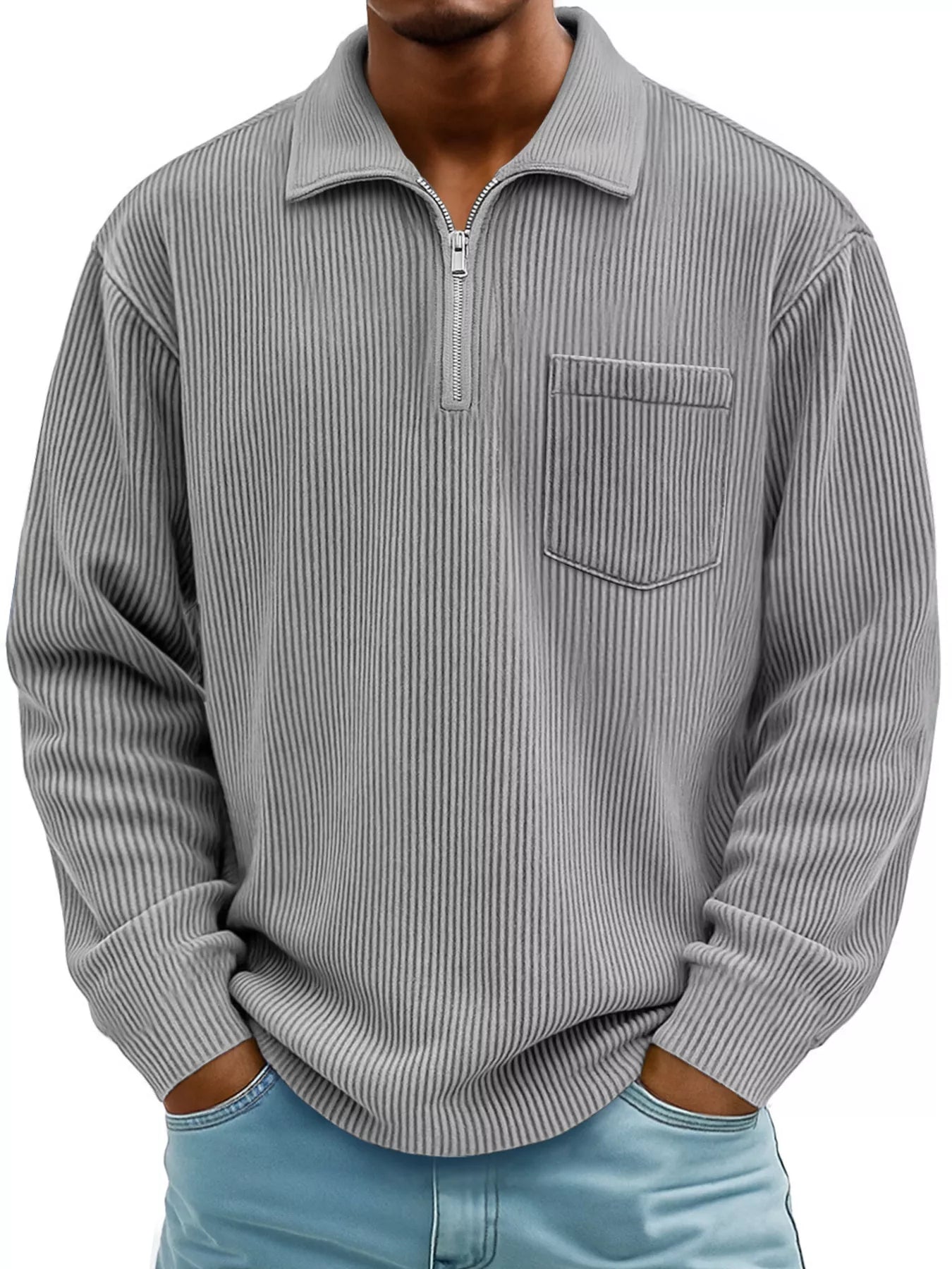 Men's Full Size Corduroy Half Zip Casual Top Plus Size
