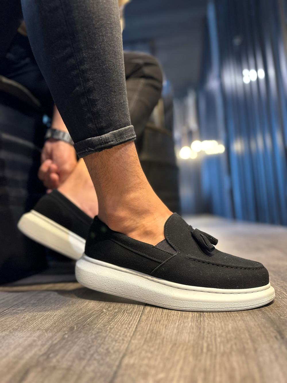Men's Daily Sports Classic Shoes 818 Black Suede (White Sole)