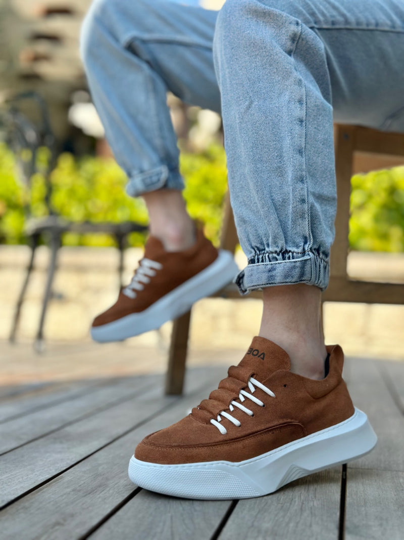 BA0332 Ladder Pattern Lace-Up Men's High Sole Tan Suede White Sole Sports Shoes