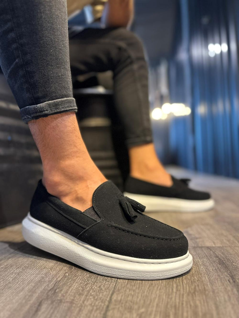 Men's High Sole Shoes B-023 Black (Black Sole)