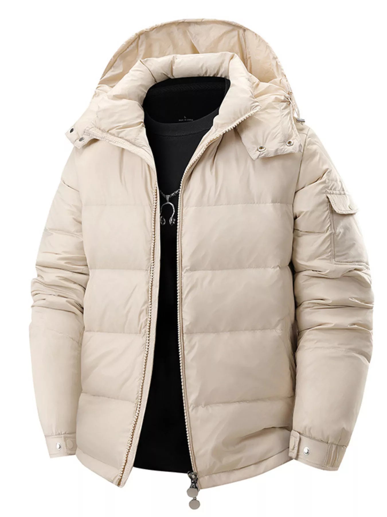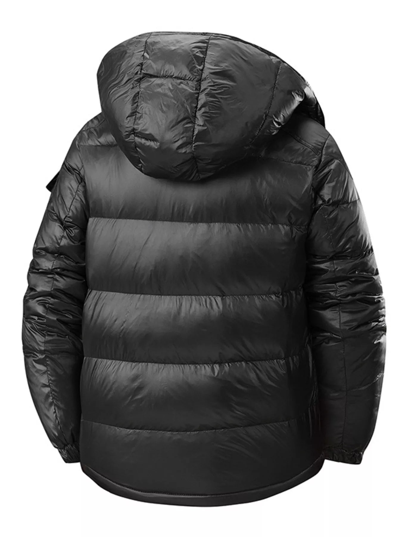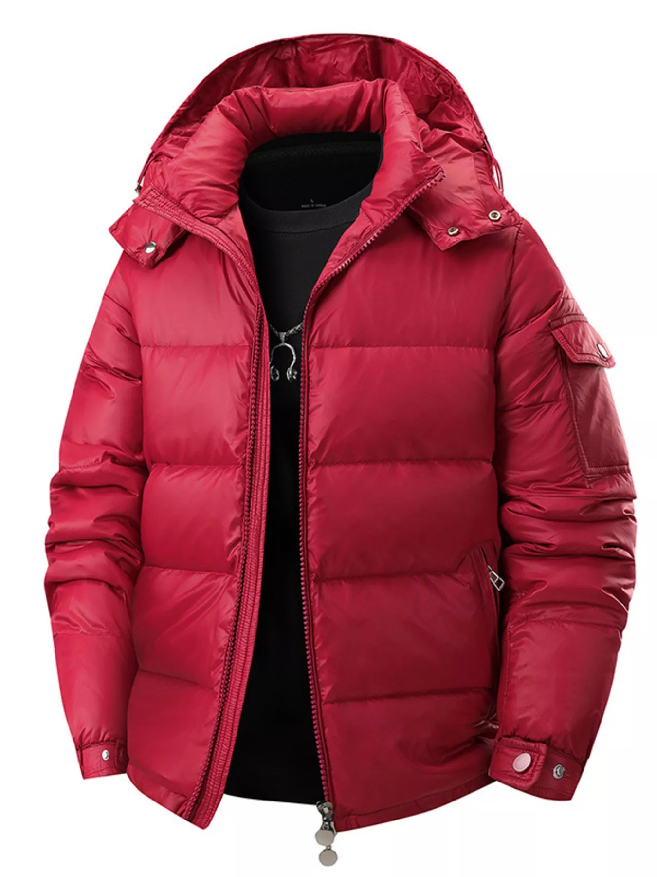 Men's Full Size Hooded Puffer Jacket with Side Zipper Pockets Plus Size