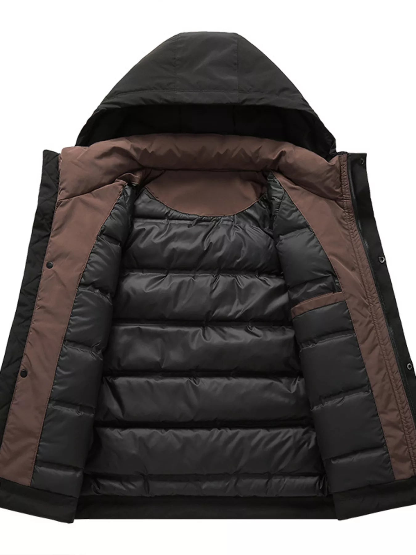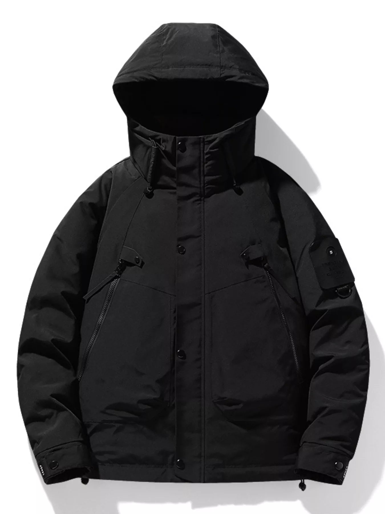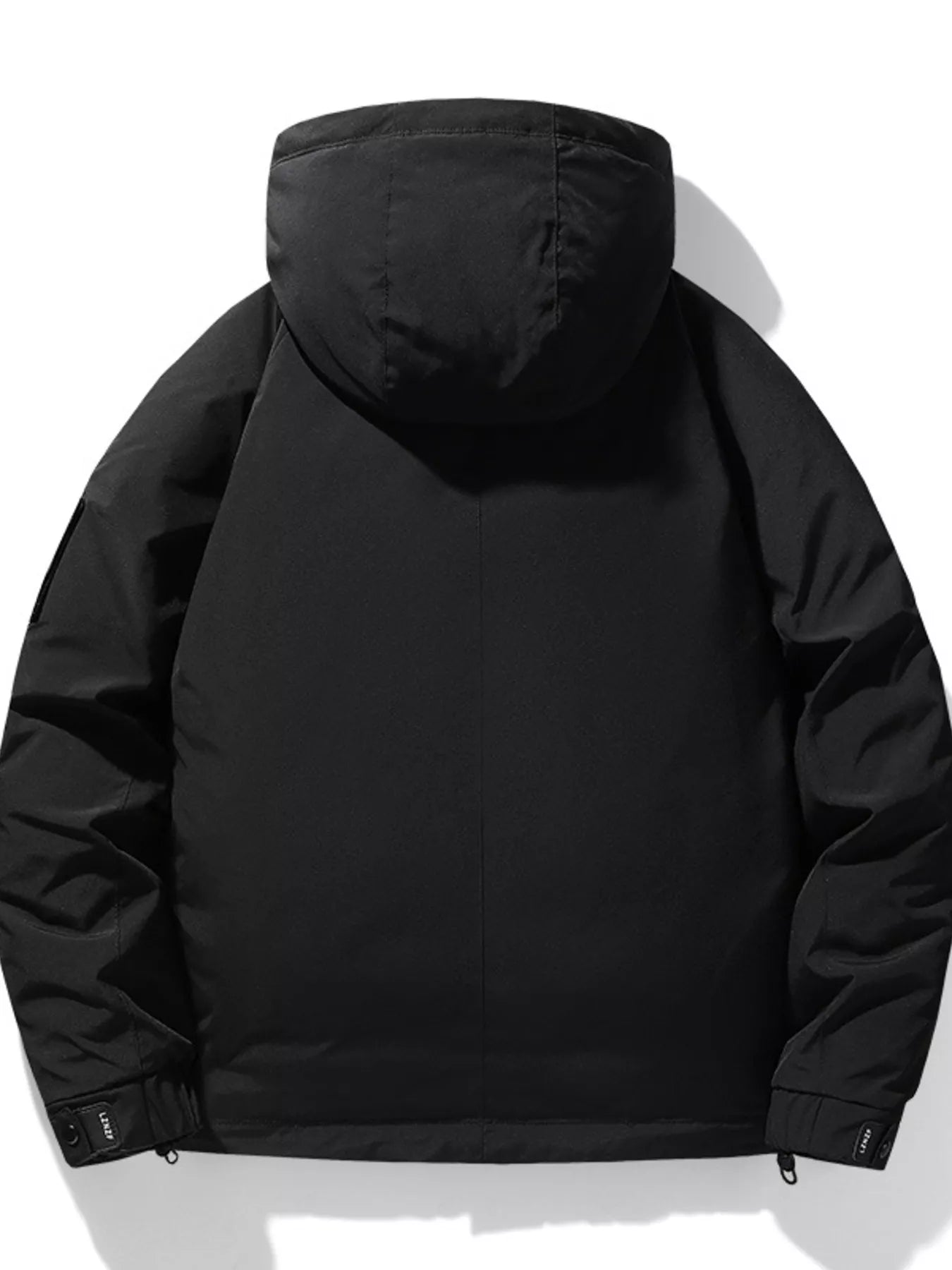 Men's Plus Size Hooded Puffer Jacket with Multiple Pockets