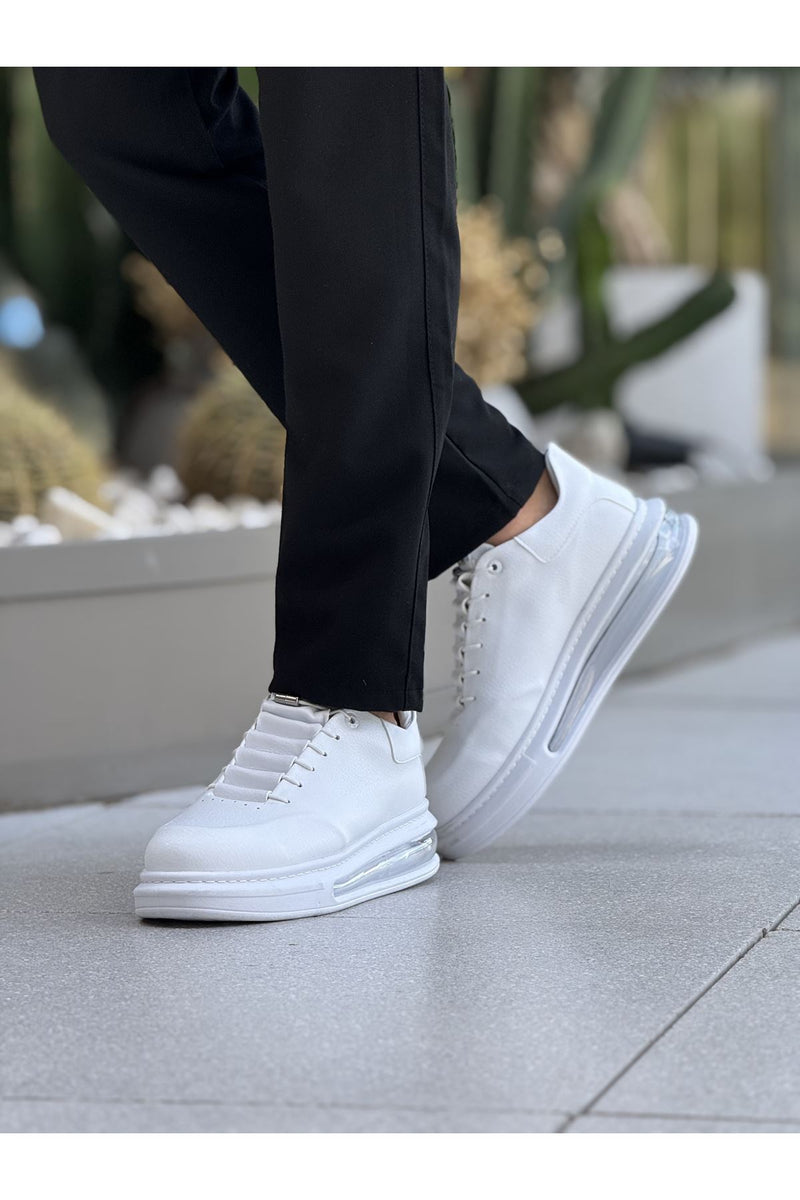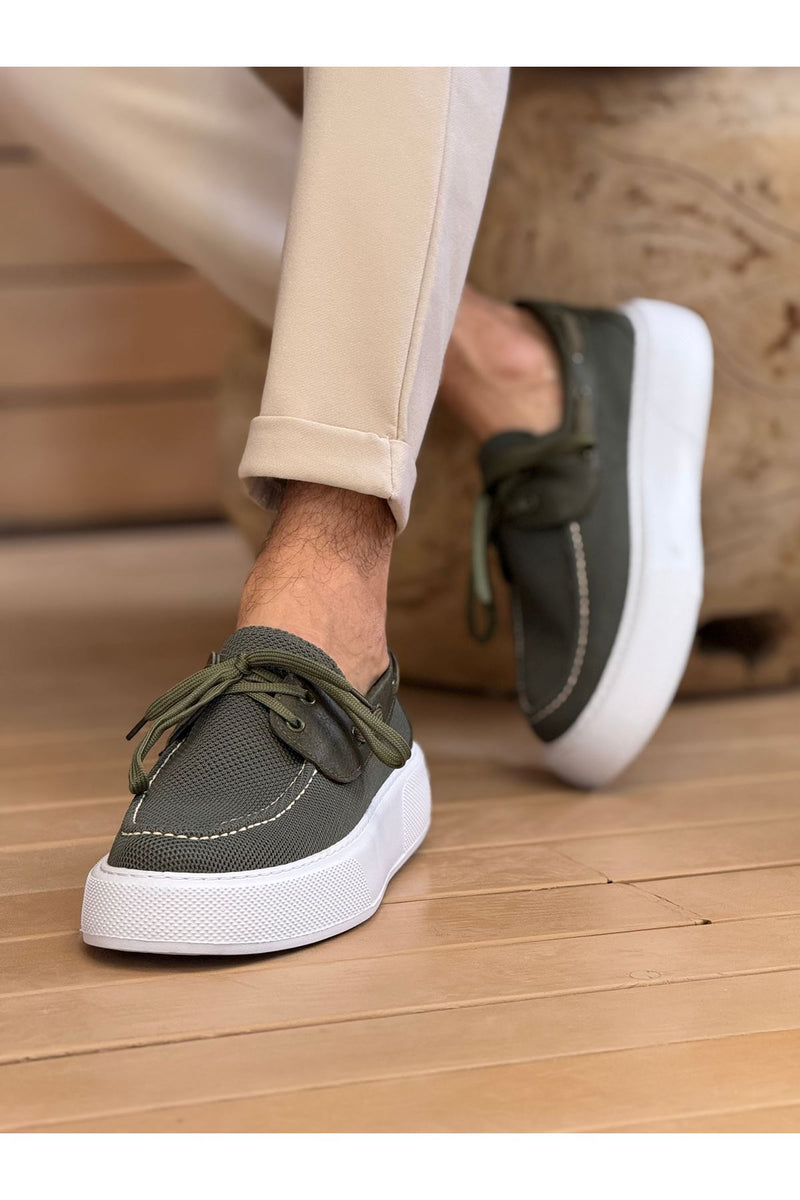 BA0423 Thick High Sole White Green Laced Sports Men's Shoes