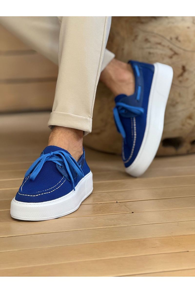 BA0423 Thick High Sole White Blue Laced Sports Men's Shoes