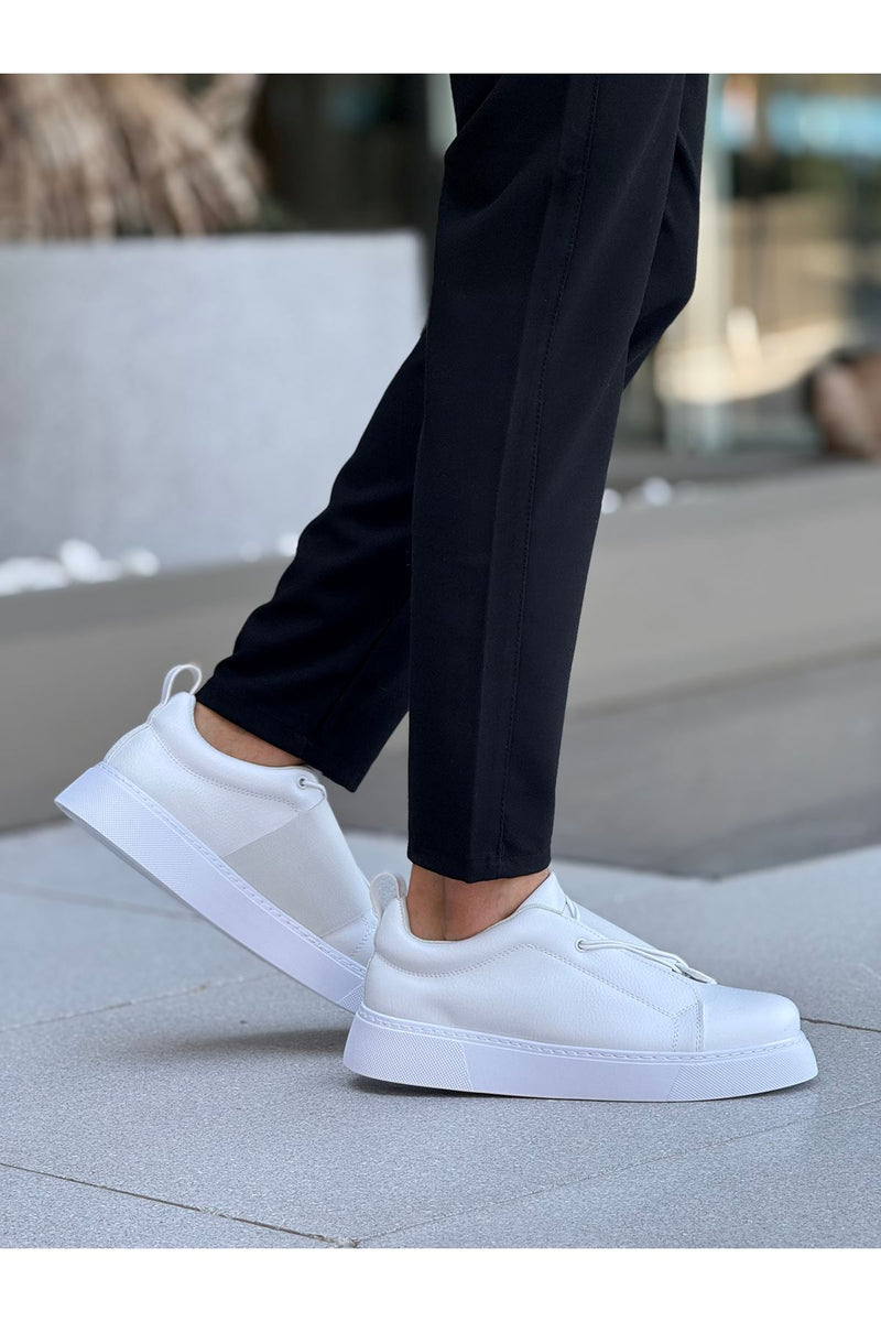 BA0911 Special Knitted Knitwear Leather Powder Detailed White Casual Sneakers
