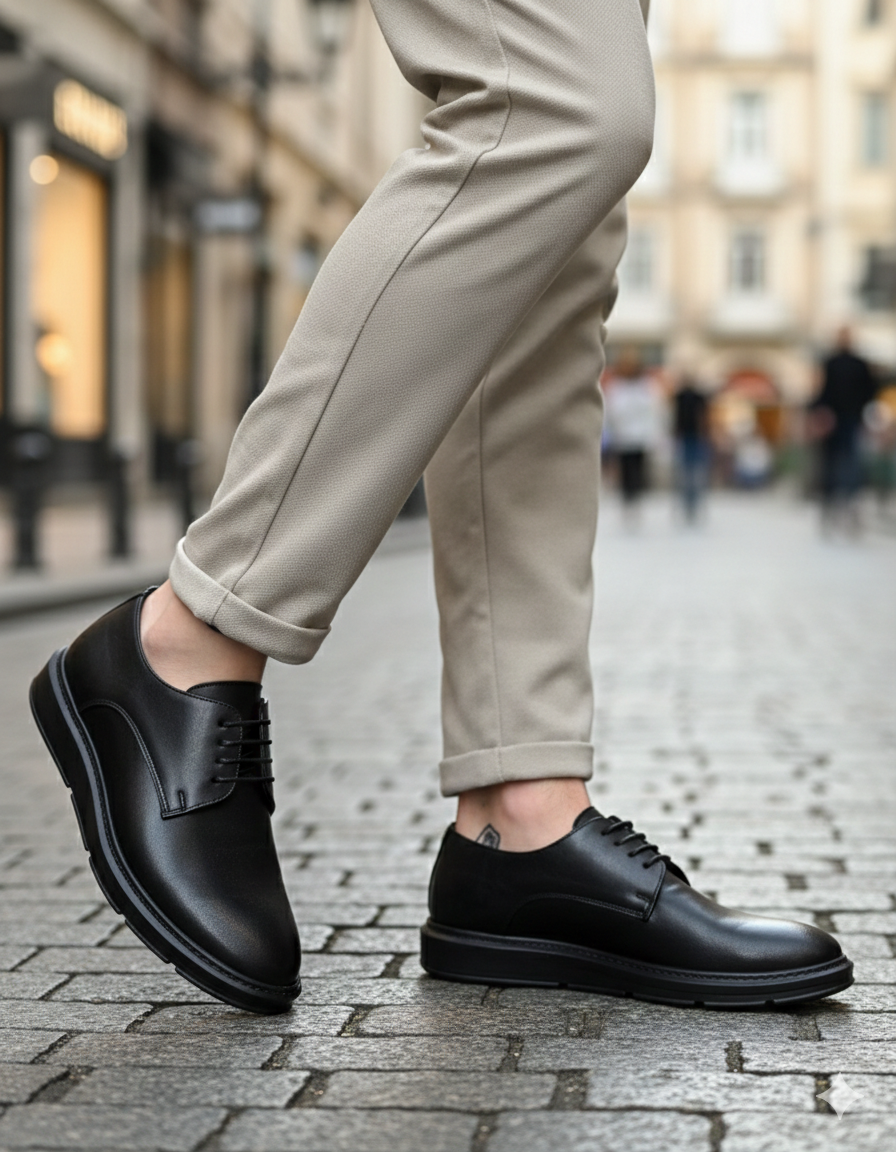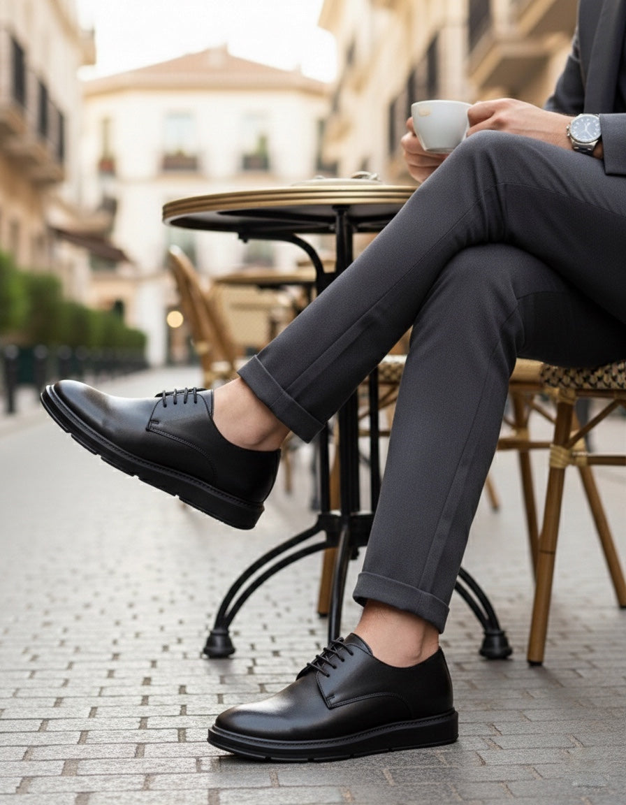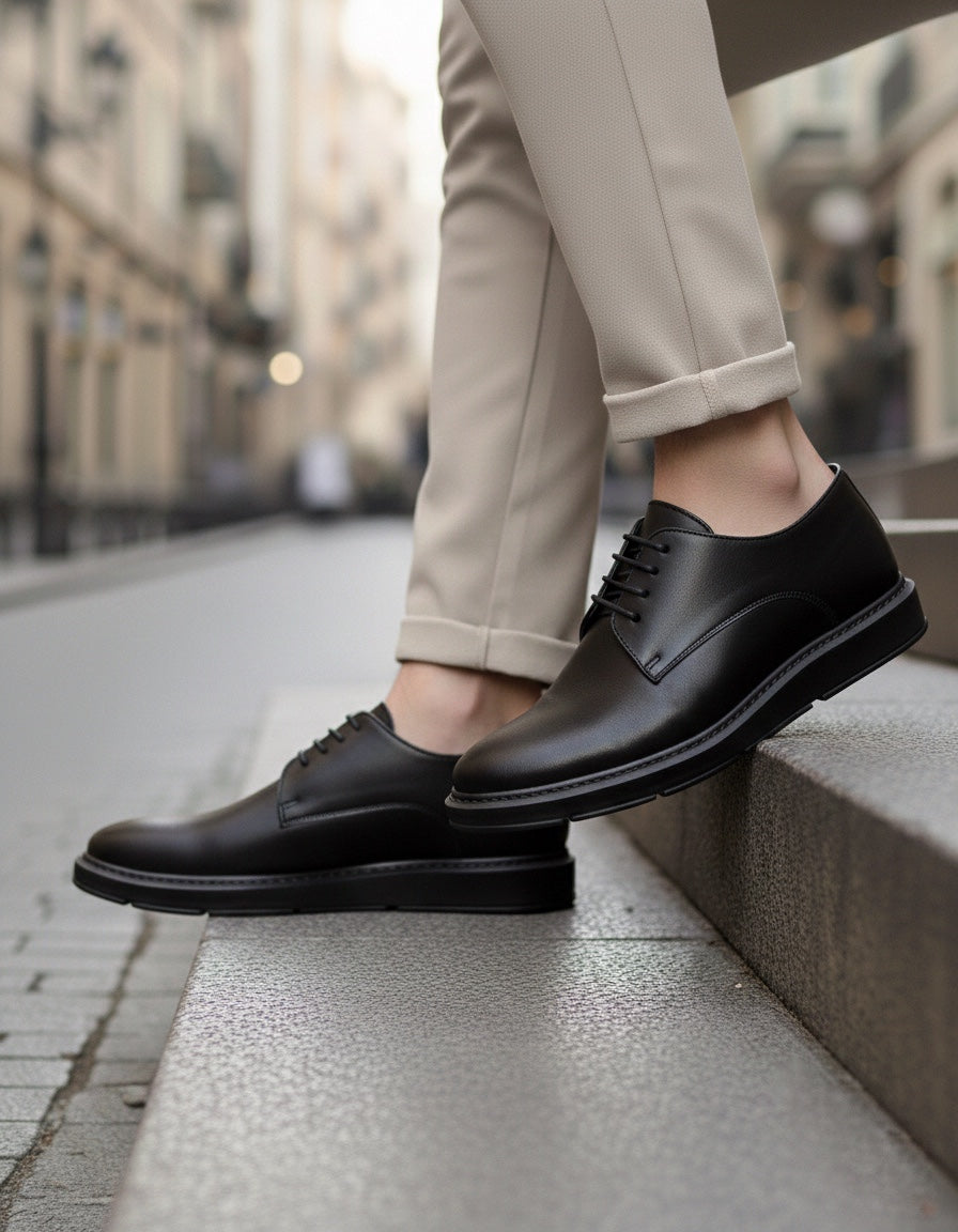 BA0003 Lace-Up Classic Black High Black Sole Casual Men's Shoes