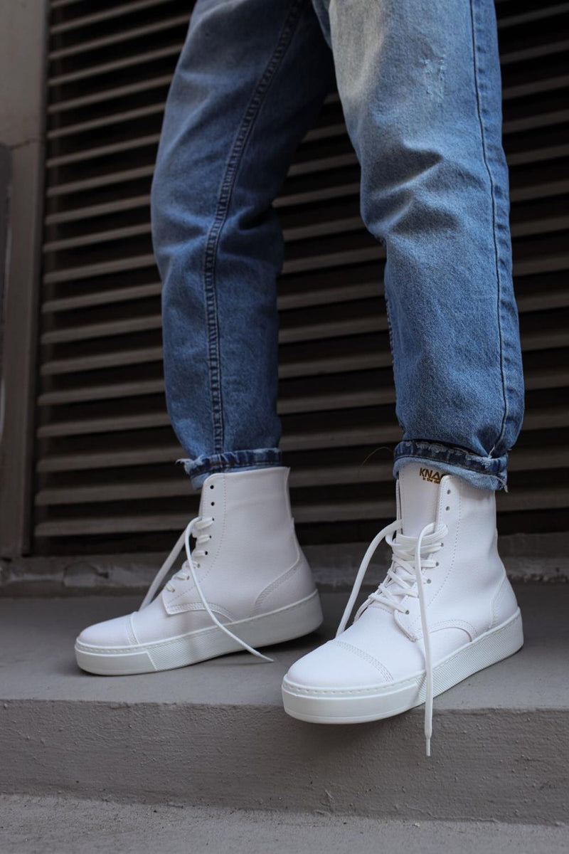 BA0321 Hidden Lace Men's High Sole White Sports Boots
