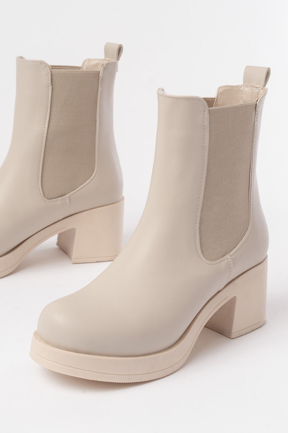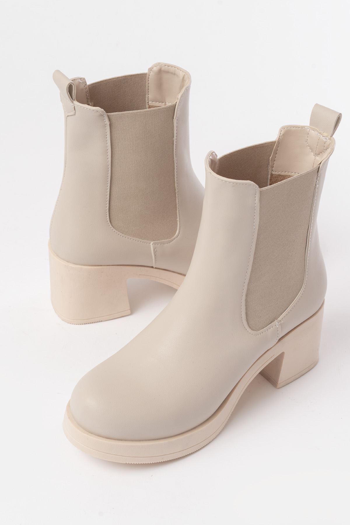 Beige Elastic Zippered Thick Heel Casual Women's Boots